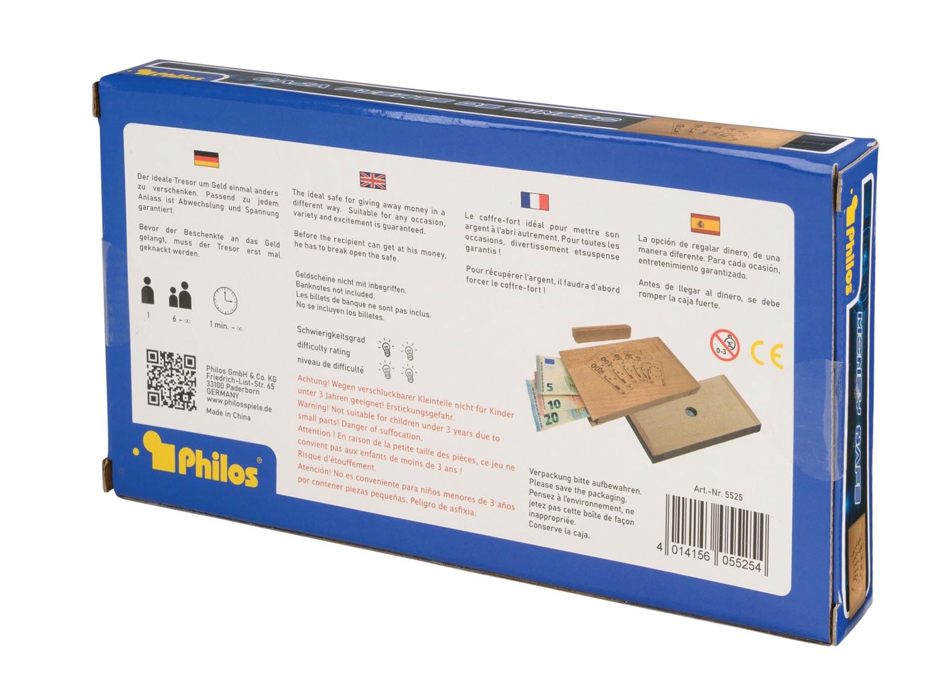 Der ideale Tresor um Geld einmal anders zu verschenken. Passend zu jedem Anlass ist Abwechslung und Spannung garantiert. Bevor der Beschenkte an das Geld gelangt, muss der Tresor erst mal geknackt werden. Inhalt: 1 Knobelspiel, ohne Geldscheine Maße Spiel: 205...