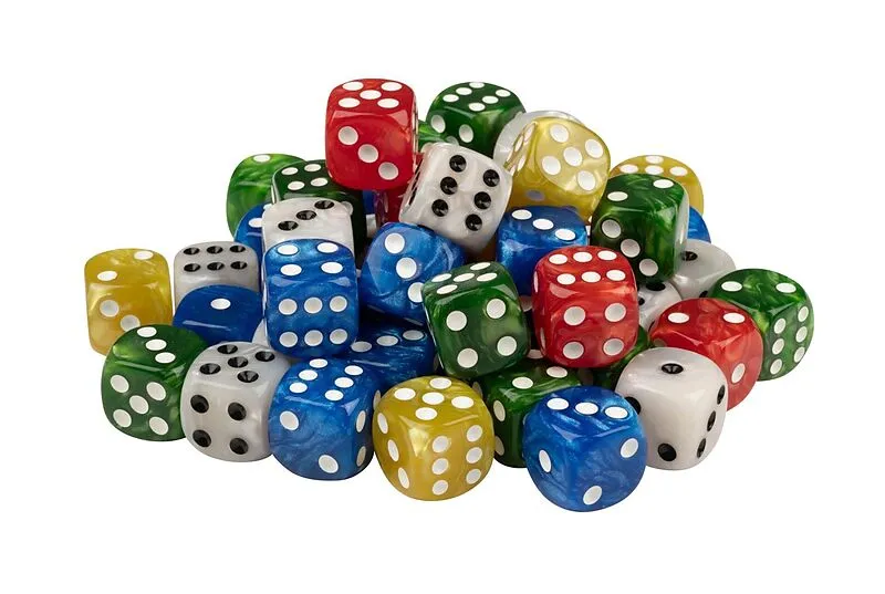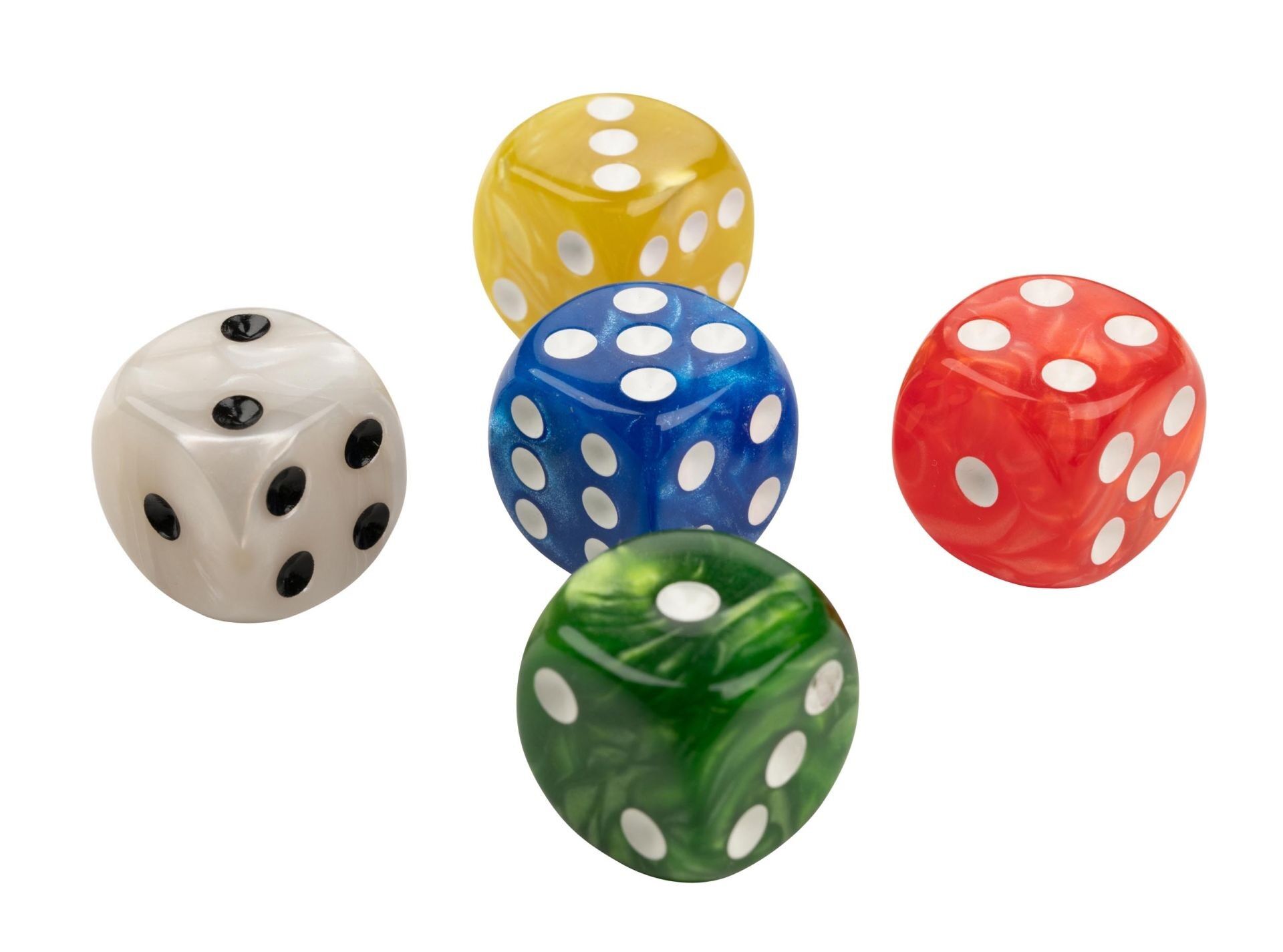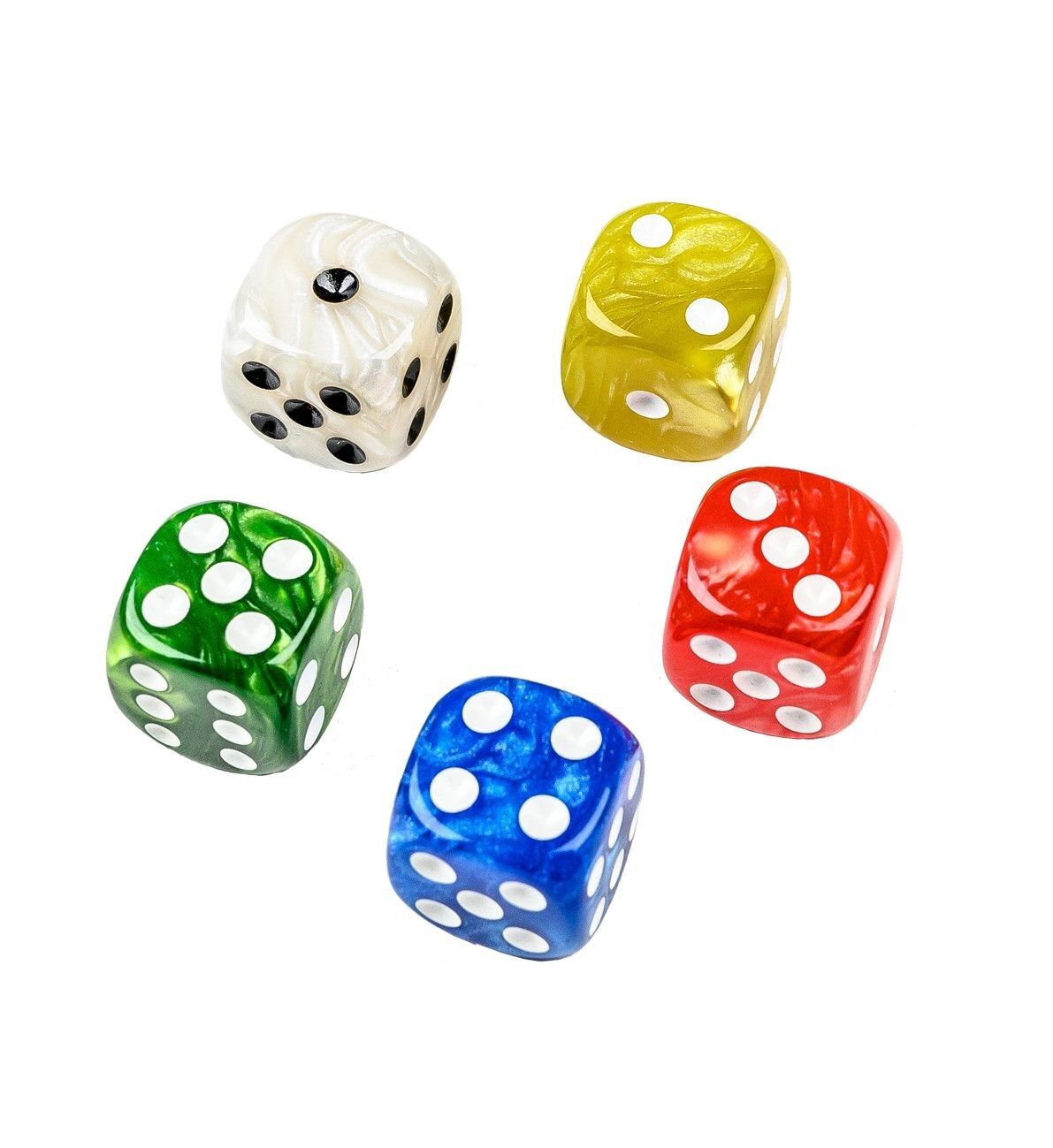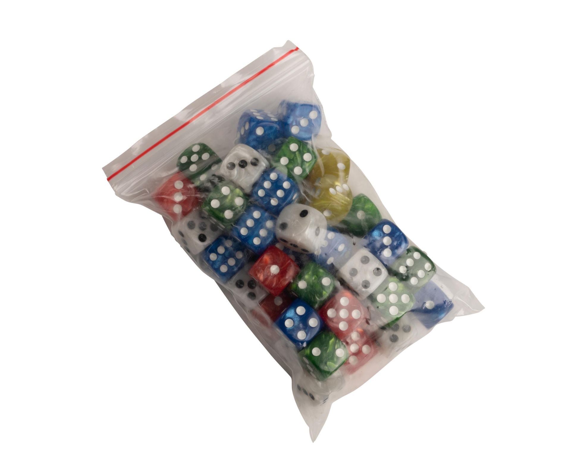 Würfel - Kantenlänge 16 mm, Kunststoff, Perleffekt, 50er Beutel, bunt gemischt.