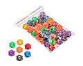 Würfel, 20-seitig - Kantenlänge 22 mm, Kunststoff, transparent, 50er Beutel, bunt gemischt