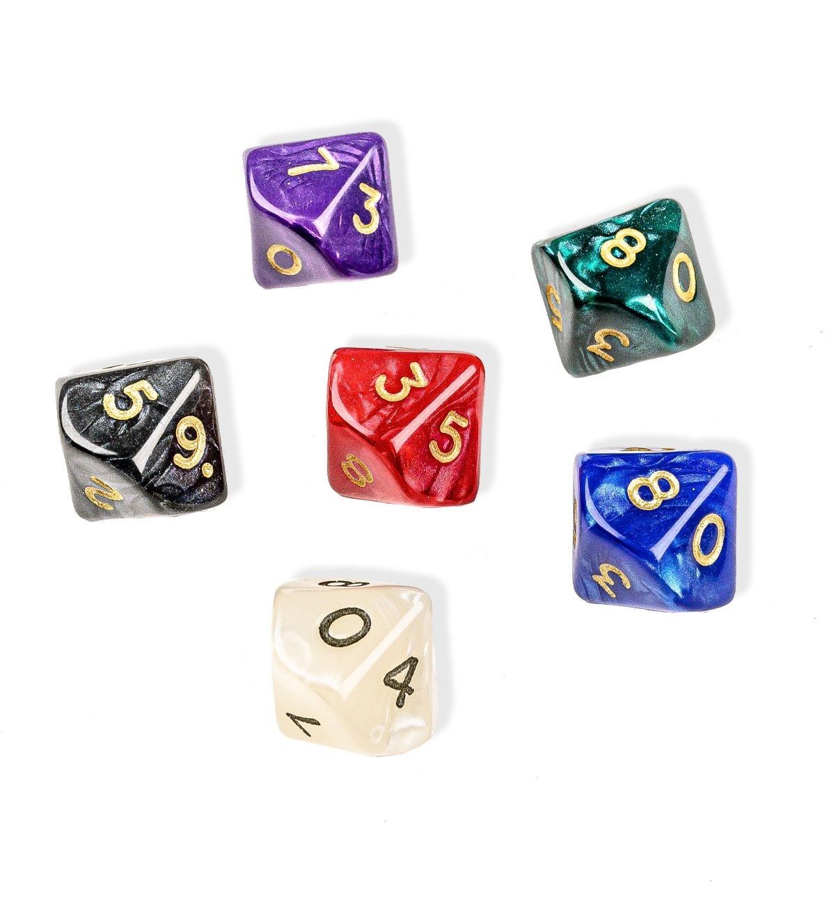 Maße Würfel: 22 mm, 10-seitig Material: Kunststoff Inhalt: 50 Stück, in einem Polybeutel verpackt Farbe: pearl, bunt gemischt Maße Verpackung: 130 x 130 x 35 mm