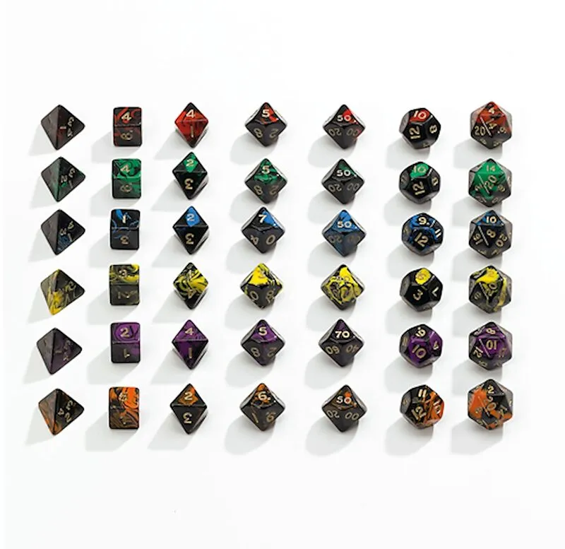 7 unterschiedliche Würfel in gelb im Polybeutel. Maße der Würfel: Würfel 1: 23x21x21mm Würfel 2: 22x21x21mm Würfel 3: 22x21x21mm Würfel 4: 25x19x19mm Würfel 5: 16x16x16mm Würfel 6: 21x18x18mm Würfel 7: 19x16x16mm Material: Kunststoff Inhalt: 7 Stück, in einem ...