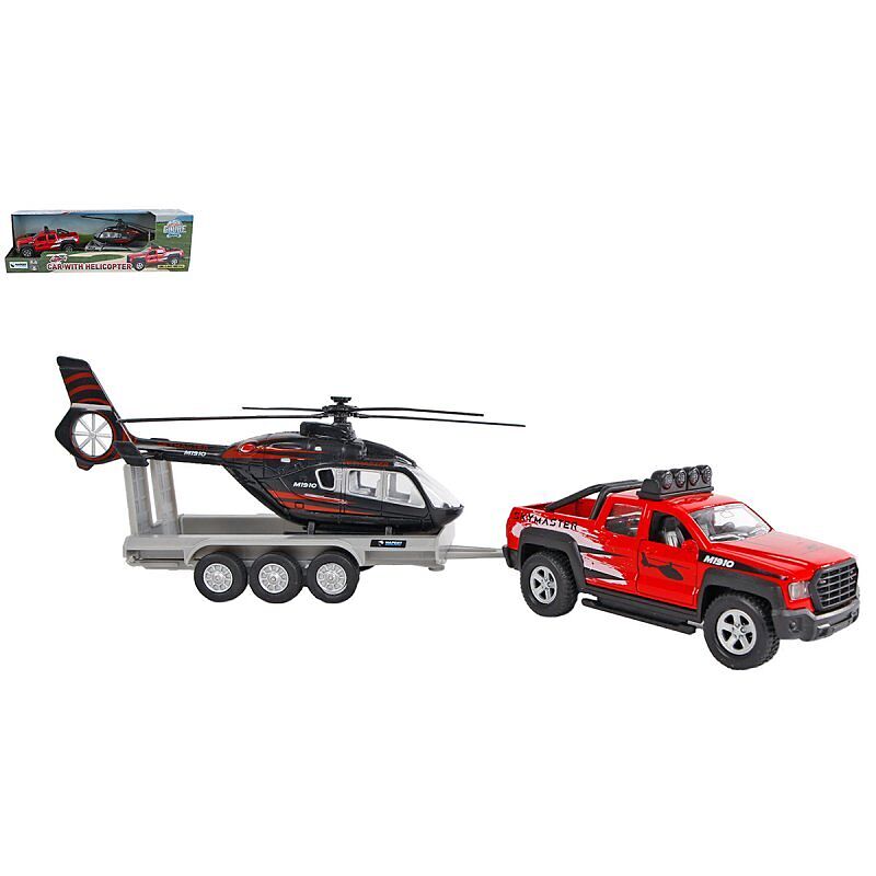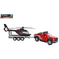 Die Cast Geländewagen mit Anhänger und Helikopter.