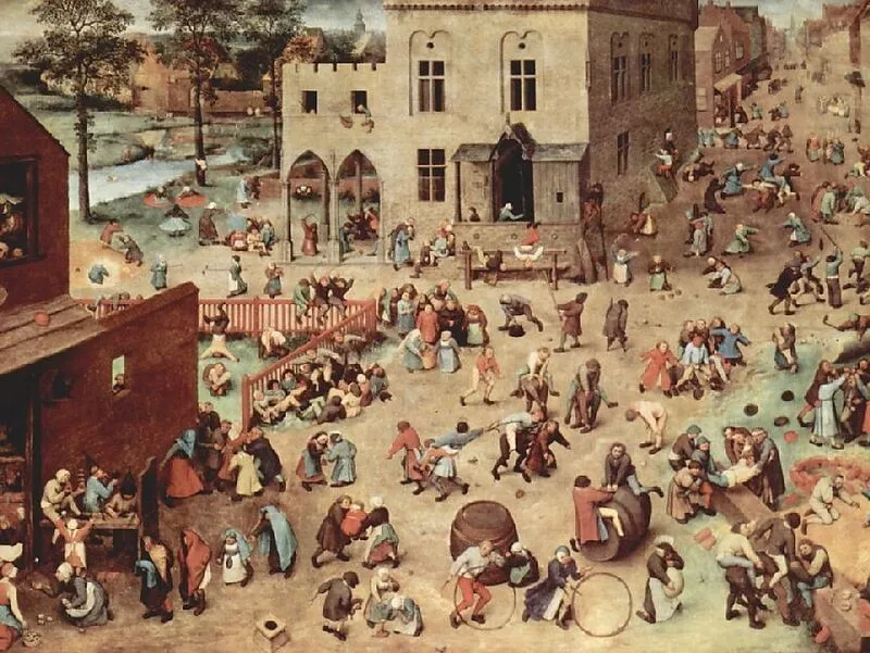 Pieter Bruegel d. Ä. - Serie der sogenannten bilderbogenartigen Gemälde, Szene: Die Kinderspiele - 1560 - Öl auf Holz - Wien - Kunsthistorisches Museum - Niederlande (Flandern) - Renaissance