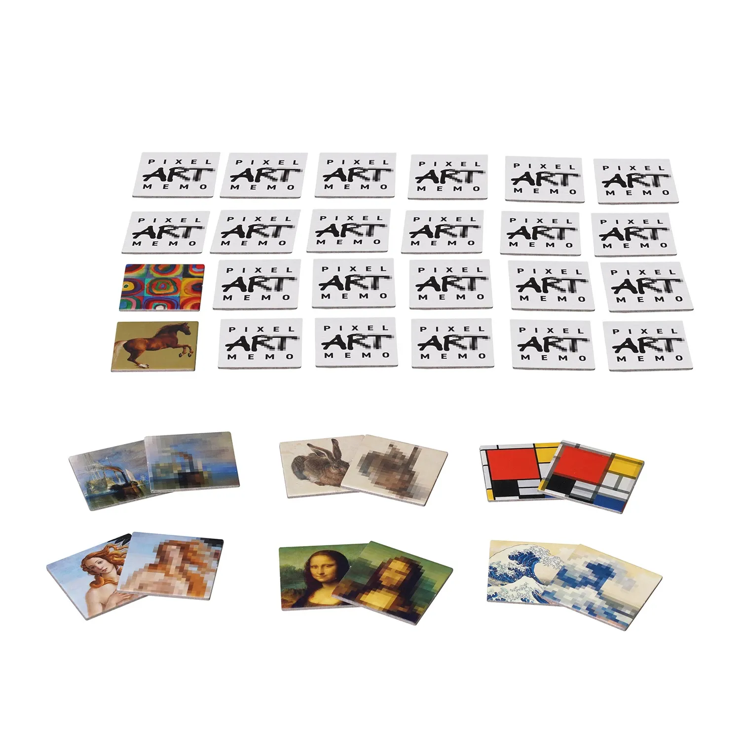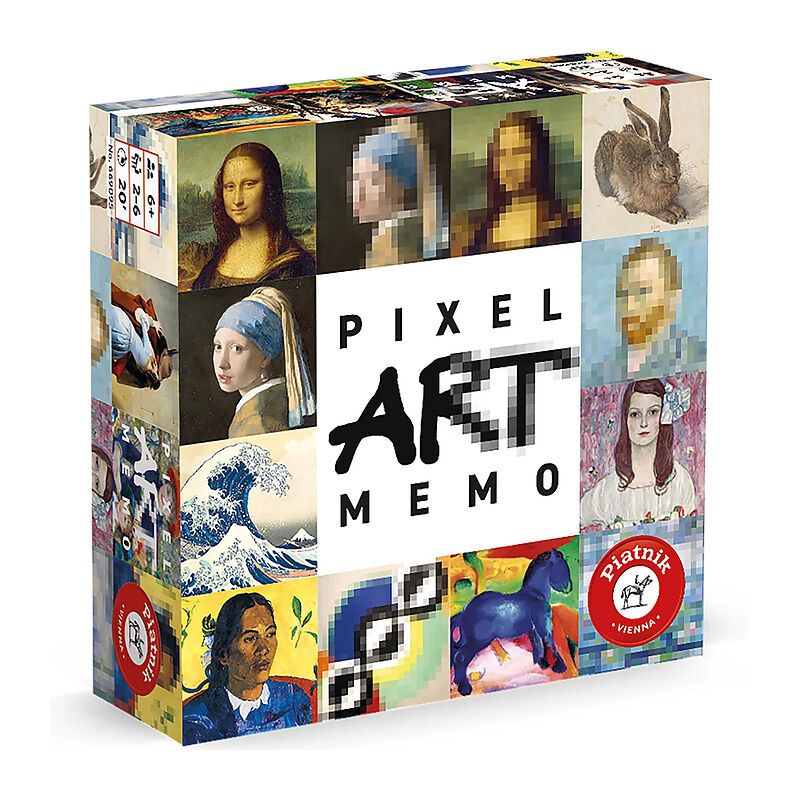 27 Motive bekannter Kunstwerke aus aller Welt, auf hochwertigen Karton-Plättchen, gilt es nach Memory-Art zu finden. In diesem speziellem Memo müsst ihr das Original mit seinem verpixelten Bild in Verbindung bringen. Alle Kärtchen werden gemischt und mit der B...