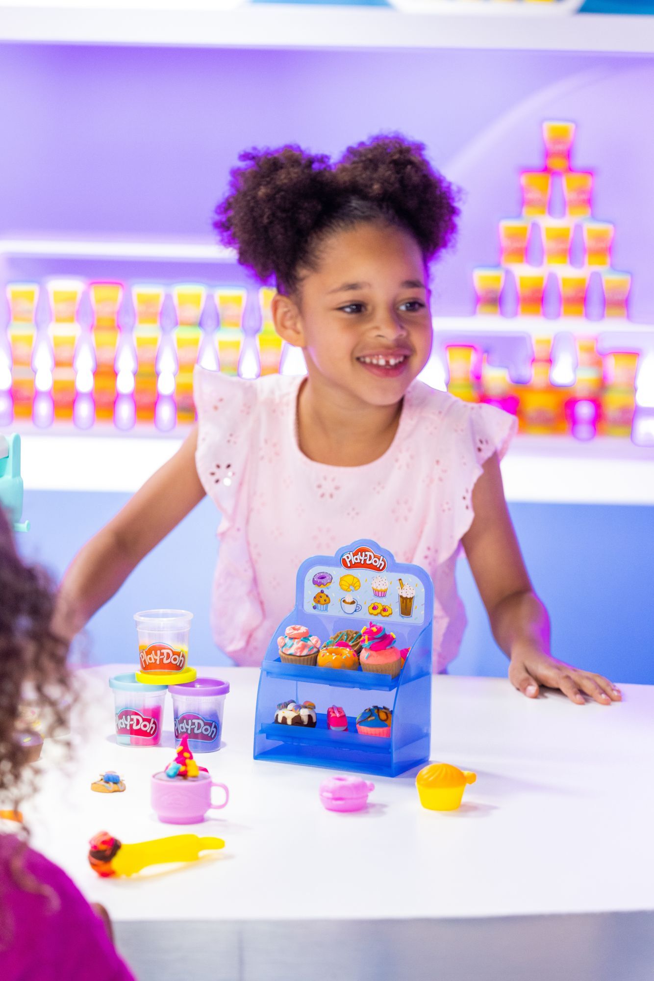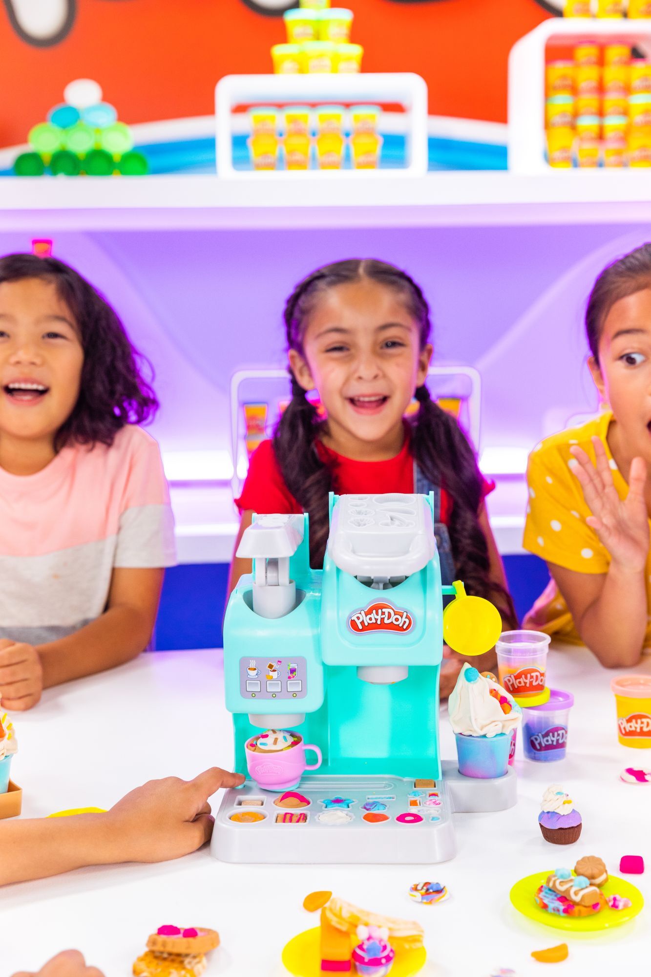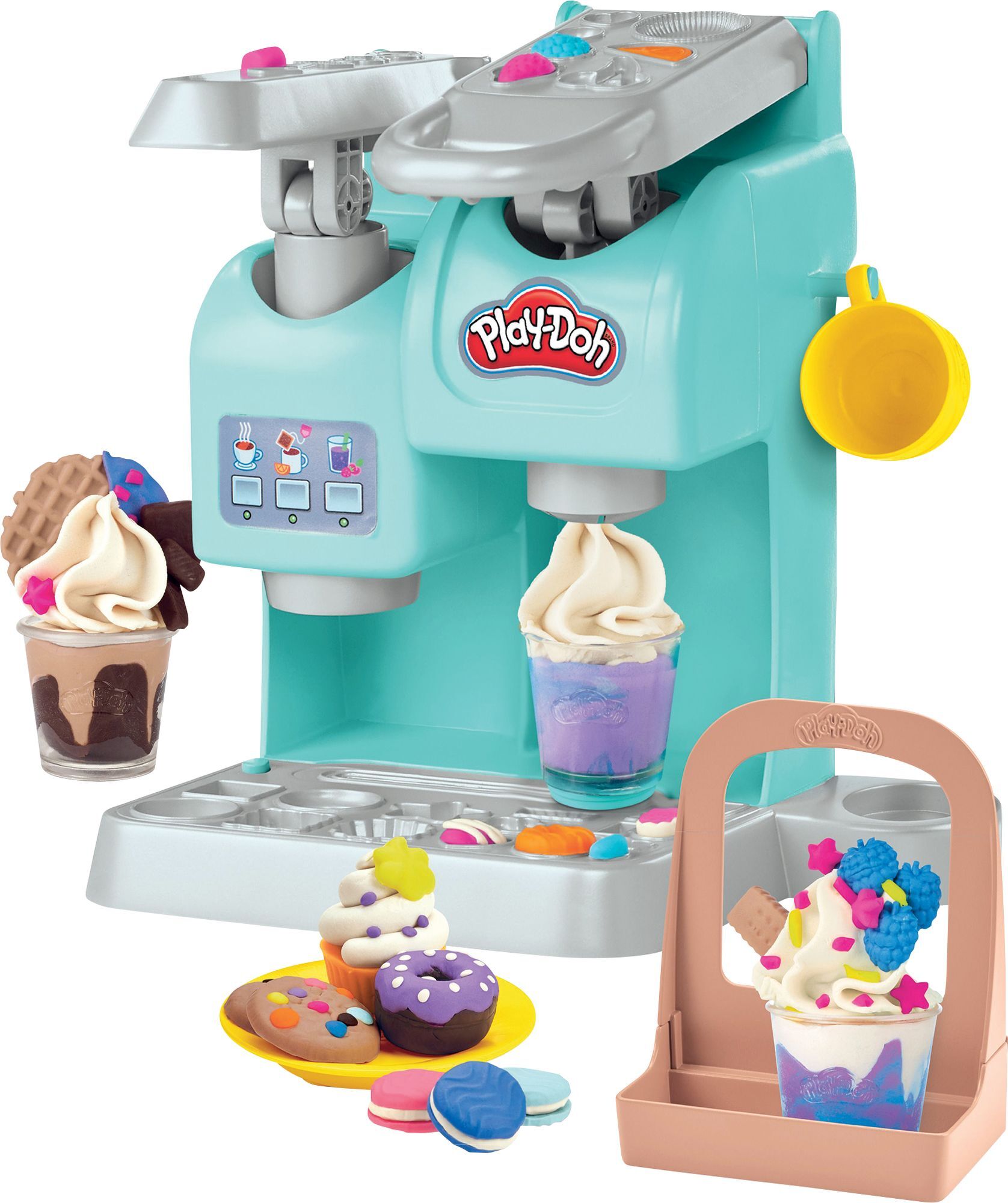 Play-Doh Knetspaß Café Das Knetspaß Café ermöglicht kleinen Baristas, in ihrem eigenen Café fantasievolle Play-Doh Getränke zu servieren. Mit dem Spielzeug Kaffee- Automaten lassen sich Becher mit bunter Spielknete füllen, drehen, zur Topping-Station verschieb...