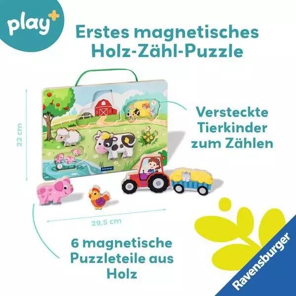 Dieses magnetische 3 in 1 Holz-Zähl-Puzzle und Balancierspiel sorgt bei Kindern ab 1 Jahr für langanhaltenden Spielspaß. 6 stabile Bauernhof-Tiere aus Holz animieren zum Puzzeln, geschickten Balancieren und freien Spielen. Versteckte Tierkinder laden zum Zähle...