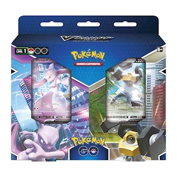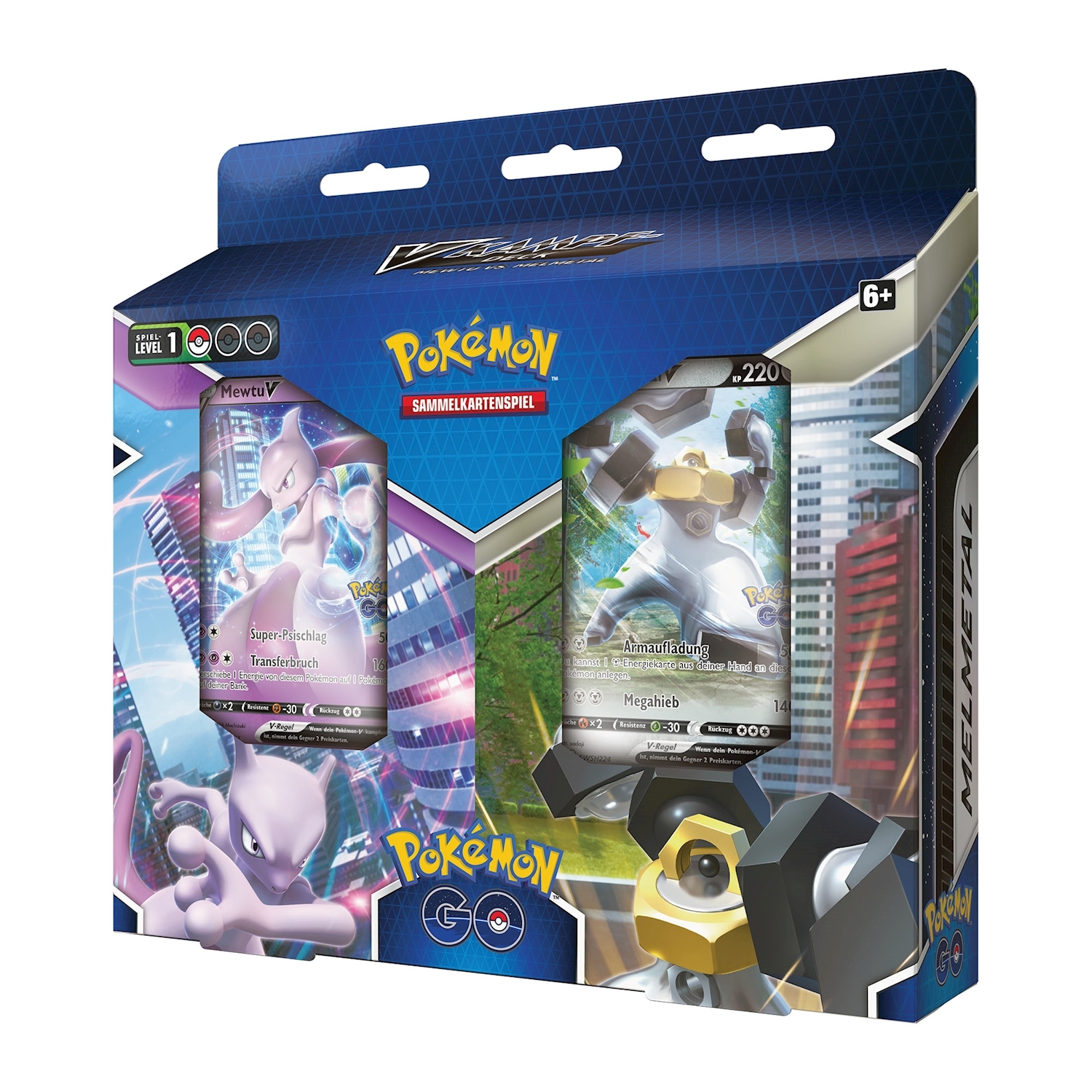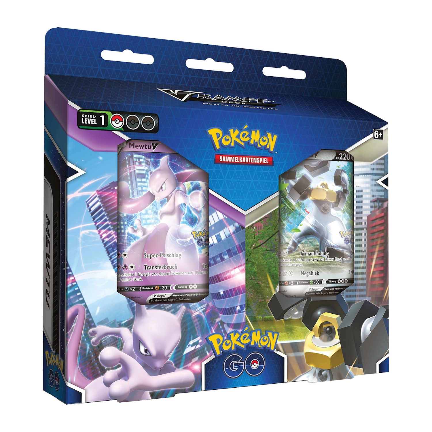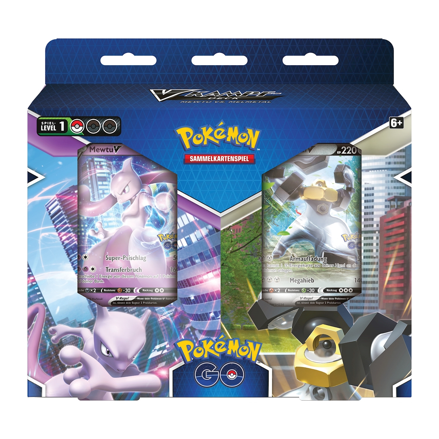 Das V-Kampfdeck Pokémon GO: Mewtu vs. Melmetal des Pokémon-Sammelkartenspiels enthält: 2 spielbare Pokémon GO-V-Kampfdecks (mit jeweils 60 Karten) Jedes Deck enthält 1 holografisches Pokémon-V: Mewtu-V oder Melmetal-V 11 zusätzliche Trainerkarten, inklusive 5 ...