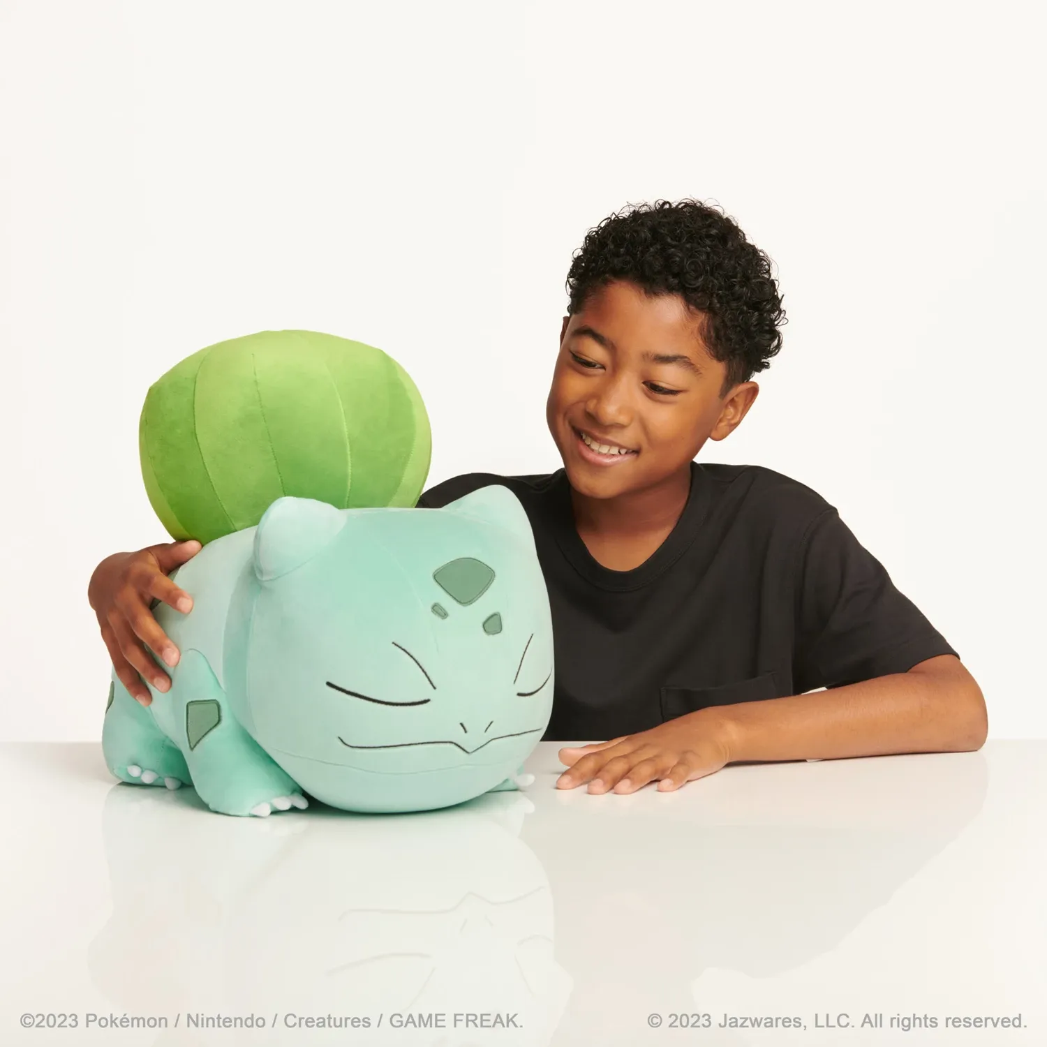 Zeit zum Kuscheln mit diesem 45 cm großen (39cx36cm), schlafenden Bisasam-Plüsch! Dieser grosse Bisasam hat ein superweiches Aussenmaterial und eine flauschige Füllung, die ihn ideal zum Spielen, Schlafen oder Kuscheln macht! Mit seiner speziellen Schlafhaltun...