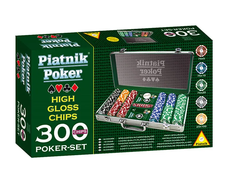 Das Piatnik-Poker-Koffer-Set; mit 300 High-Gloss-Chips, Würfeln, 2 Pokerdecks und Dealer-Chip im abschließbaren Alukoffer