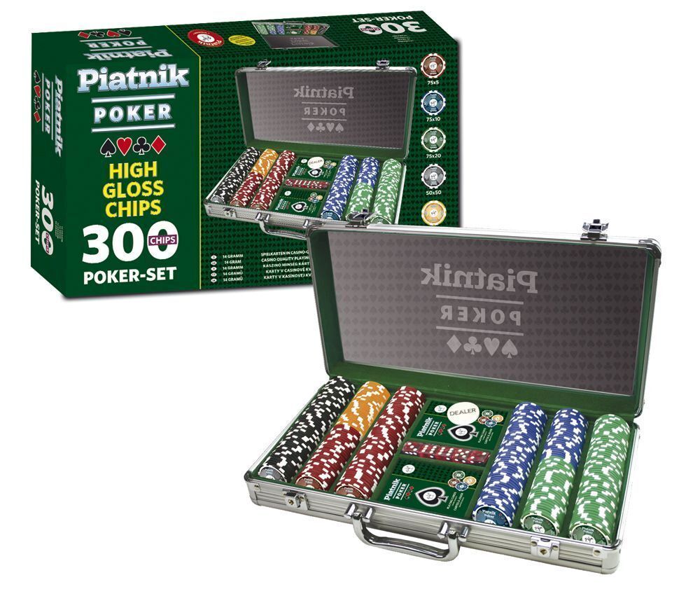 Das Piatnik-Poker-Koffer-Set; mit 300 High-Gloss-Chips, Würfeln, 2 Pokerdecks und Dealer-Chip im abschließbaren Alukoffer