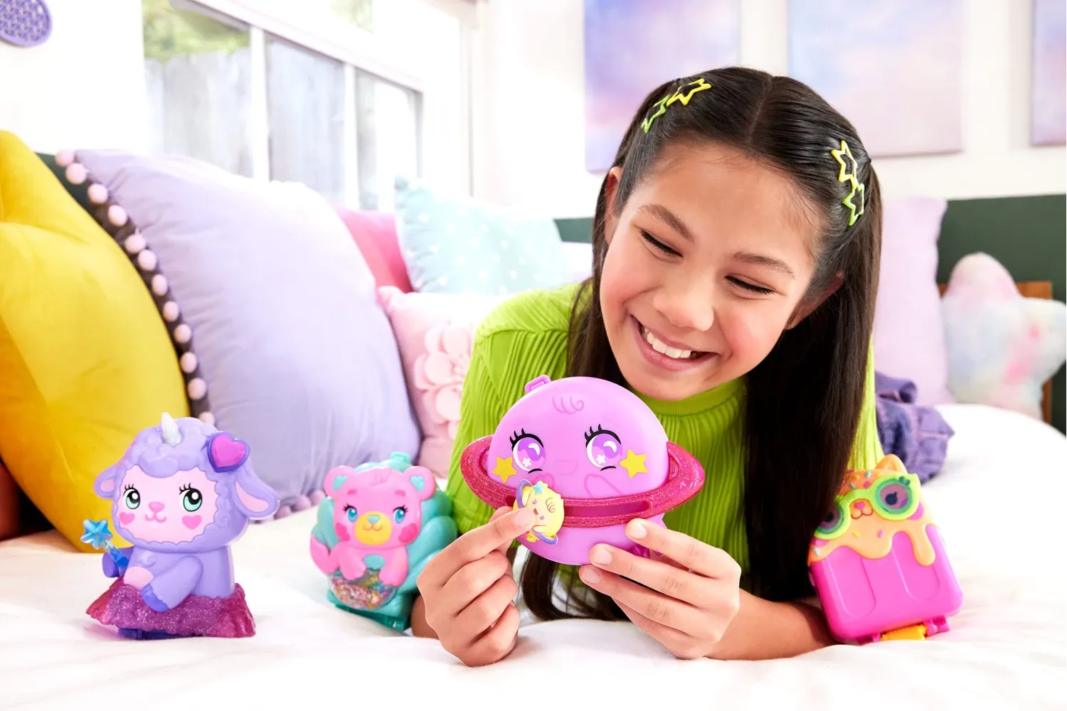 Polly Pocket Traumland-Schatulle in zauberhafter Lammform mit 1 Minipuppe und Haustier-Einhorn, Reisespielzeug mit Fut Diese zauberhafte Polly Pocket Traumland-Schatulle in Lammform kann außen niedlich dekoriert werden perfekt für Kinder, die gerne ihren einzi...