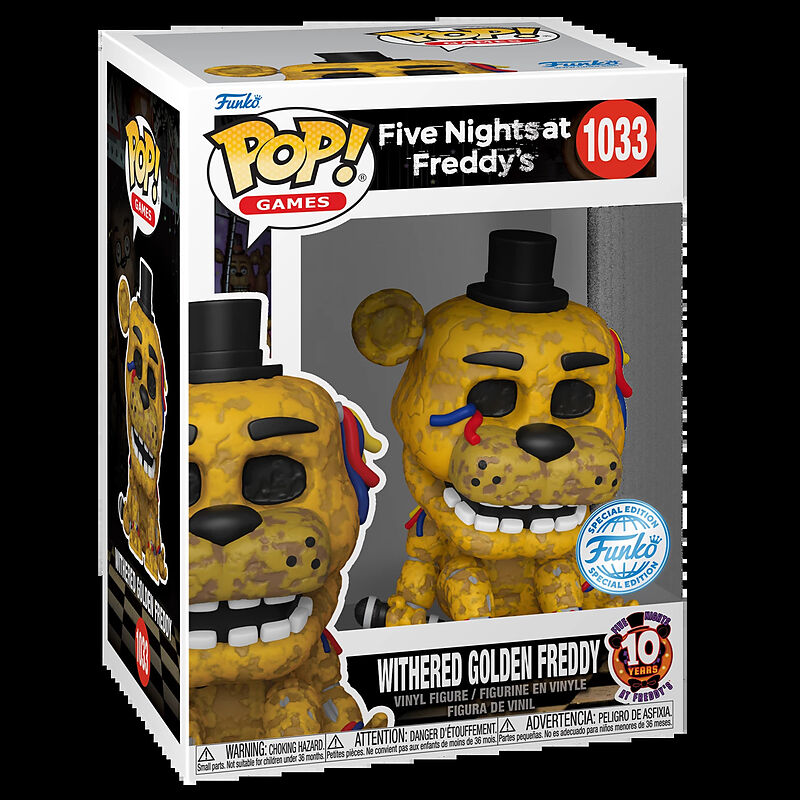 Verleihe deiner Sammlung einen Kick mit Pop! Withered Golden Freddy! Feiere 10 Jahre Five Nights at Freddy's und vervollständige deine Kollektion, indem du diesen exklusiven Pop! Withered Golden Freddy erwirbst, bevor er weg ist! Die Vinylfigur ist ca. 9.9 cm ...