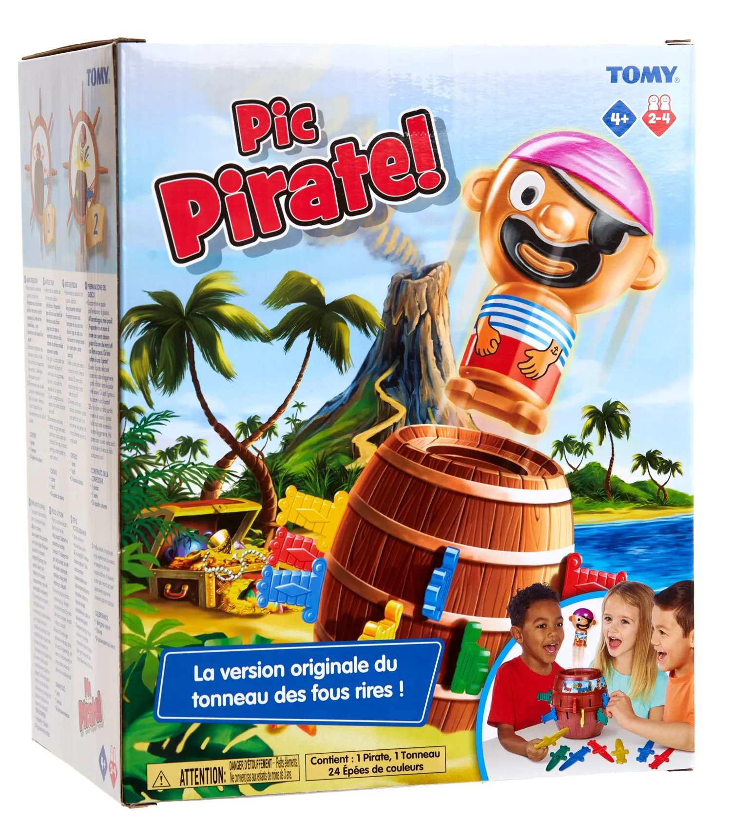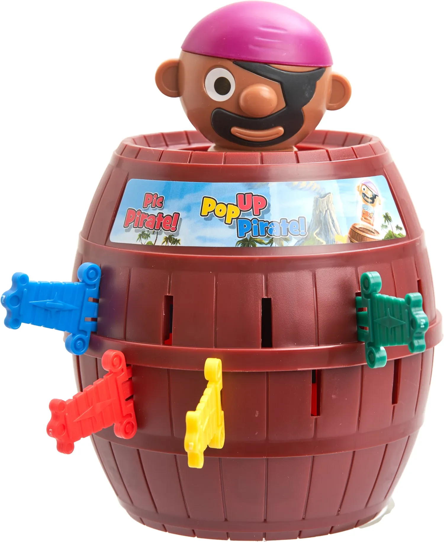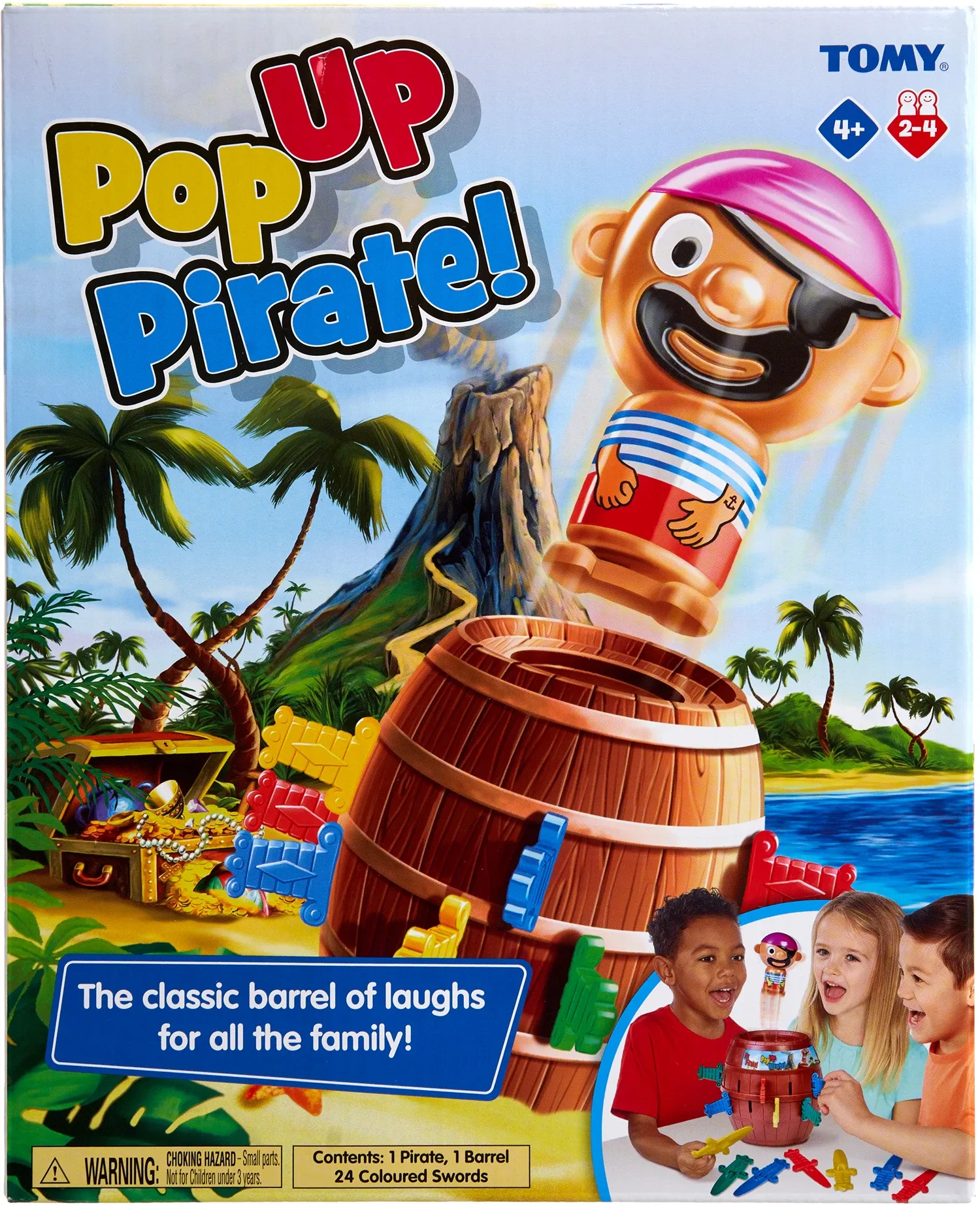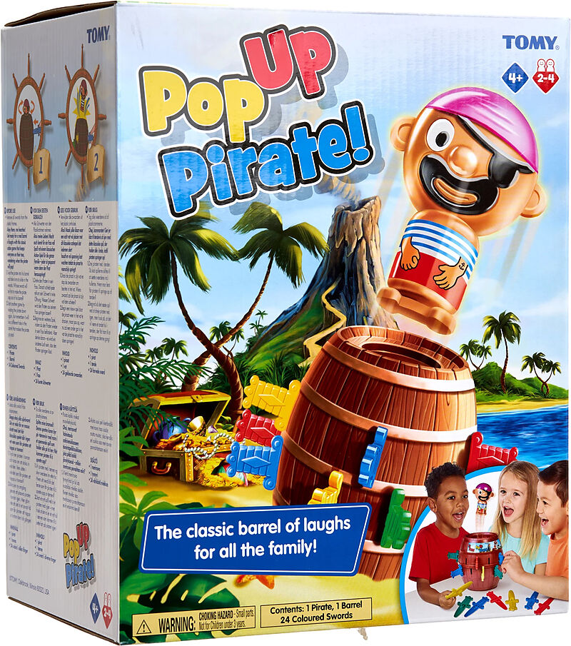 TOMY T7028 Pop Up Pirate! Pop up Pirate von TOMY. Das tolle Actionspiel - nur für echte Piraten! Wähle dein Schwert und stecke es in die dafür vorgesehenen Schlitze des Fasses! Aber pass auf, dass der Pirat nicht aus dem Fass springt - denn sonst hast du verlo...