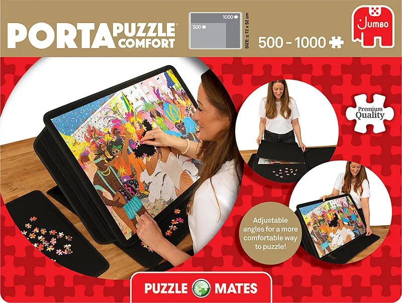 Mit dem Portapuzzle Comfort können Sie auf rückenfreundliche Weise puzzeln. Sie können das Brett so positionieren (kippen), dass Sie in Ihrer bevorzugten Position arbeiten können. Die Puzzlematte ist leicht und lässt sich einfach verstauen, z.B. unter dem Sofa...
