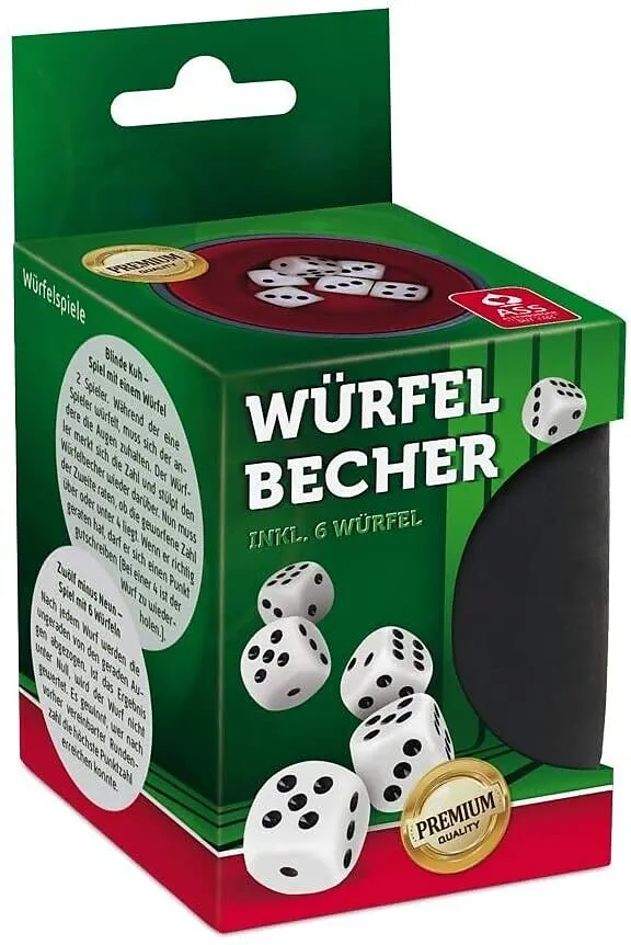 Premium Würfelbecher mit 6 Würfel Unsere neuen Premium Würfelbecher sind aus Kunststoff, Kunstleder und Filz, robust, belastbar und unverändert preiswert! Von Yatzy über Tausend bis Schwindel-Max alle Würfelspiele mit bis zu 6 Würfeln sind spielbar und sorgen ...