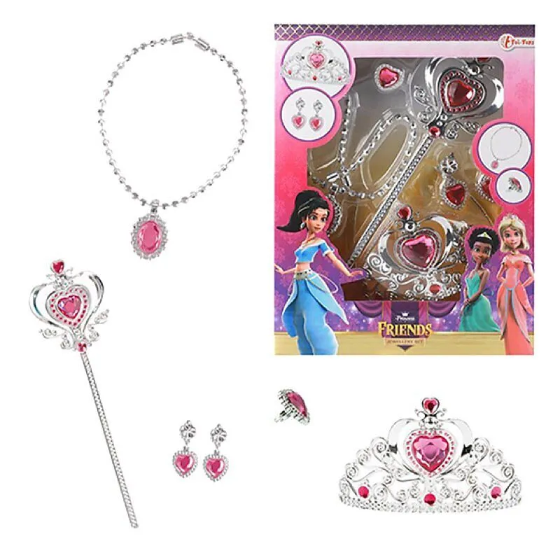Princess Schmuckset Tiara mit Ohrringe, Halskette, Zauberstab, Krone und Fingerring.