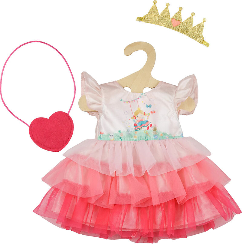 Puppenkleid ''Prinzessin Emily'' mit Herztasche und Krone, Gr. 35-45 cm Das wunderschöne Puppenkleid ''Prinzessin Emiliy verwandelt Deine Puppe in eine bezaubernde Schönheit. Das zartrosa schimmernde Oberteil ist mit der niedlichen Prinzessin Emily bedruckt, d...