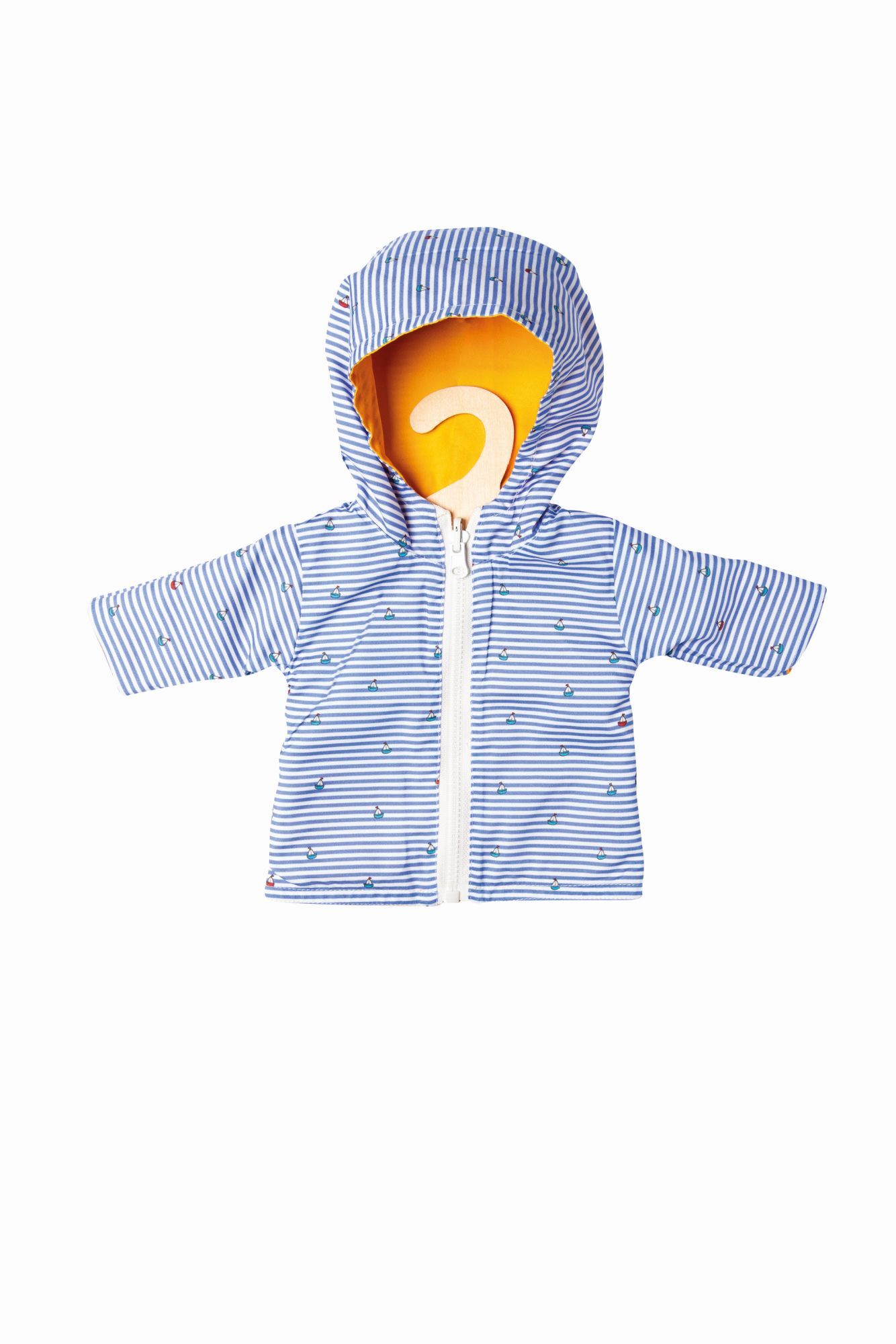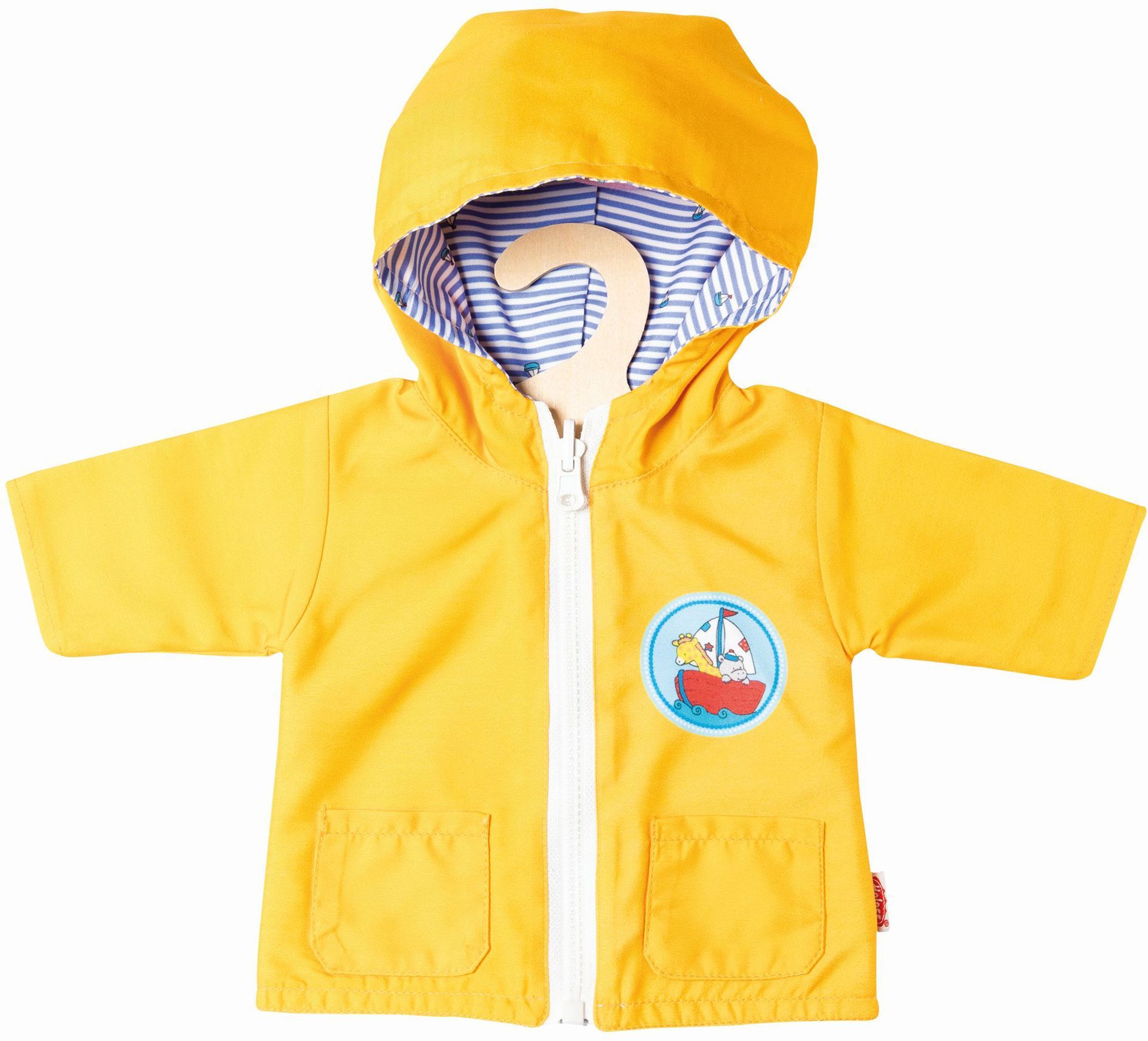 Puppen-Wendeanorak Maritim, Größe 35 - 45 cm Mit dem farbenfrohen Puppen-Wendeanorak ''Maritim'' von Heless haben Puppeneltern gleich zwei tolle Looks zur Wahl. Die gelbe Jacke im trendigen Segeljackenlook ist mit einem niedlichen Motiv bedruckt, während die g...