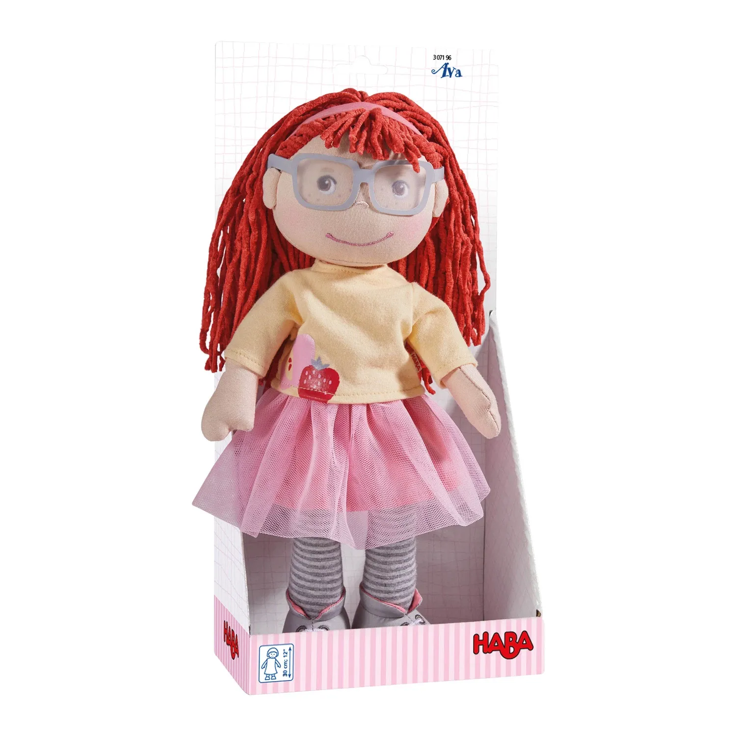 Vorhang auf für Ava! Die charmante HABA Puppe ist eine treue Begleiterin für Puppeneltern ab 18 Monaten. Nach Herzenslust können Kinder ab 1,5 Jahren die süße Stoffpuppe mit weichem Körper knuddeln. Langes, rotes Haar, das süße Lächeln und die coole Brille sin...