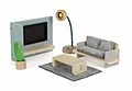 Stilvoller Wohnkomfort fürs Puppenhaus! Das Puppenhausmöbel-Set Wohnzimmer schafft einen modernen, einladenden Raum für die Puppenfamilie, in dem sie gemütliche Nachmittage und Abende verbringen kann. Mit den detailreich gestalteten Möbelstücken und Accessoire...