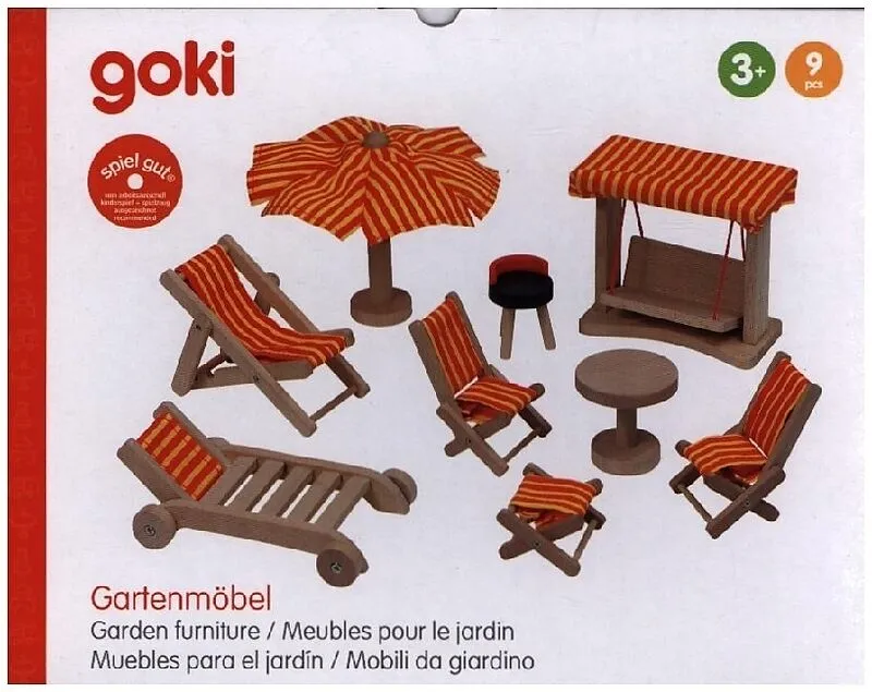 Die Gartenmöbel passen ideal zum Puppenhaus Veranda (Art. 51893). Schaukel H 10,5 cm