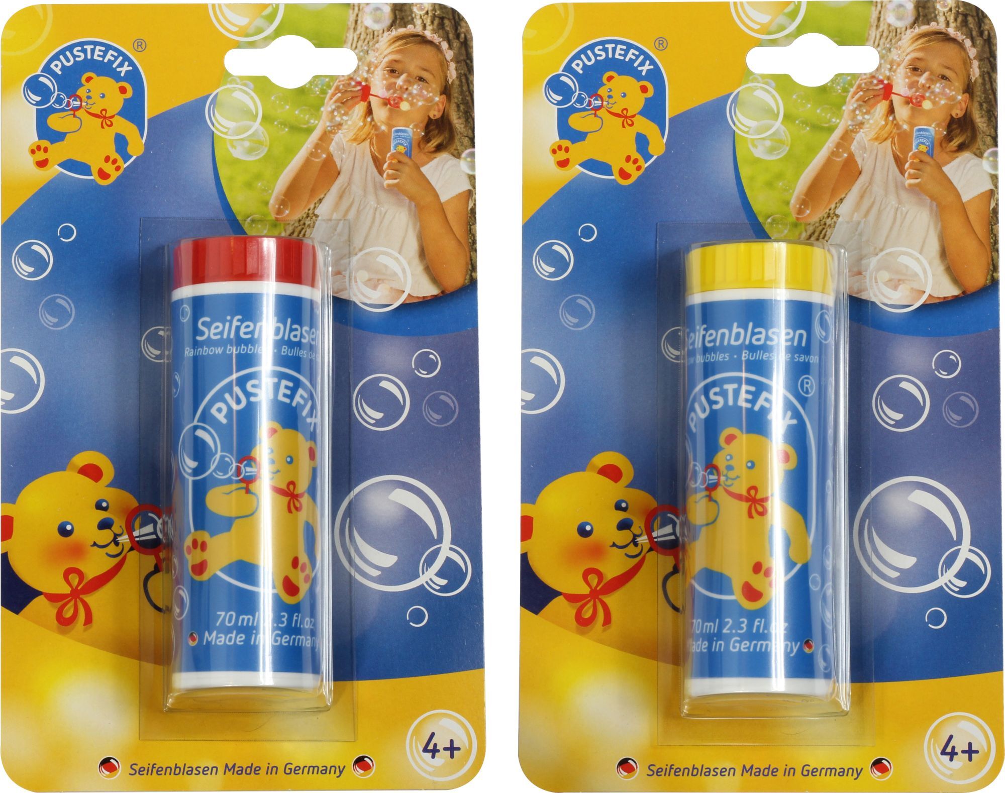 Original Pustefix Grosspackung auf Blisterkarte. Die Seifenblasenflüssigkeit ist ungiftig. Ein toller Seifenblasenspaß für Groß und Klein. Inhalt: ca. 70 ml.
