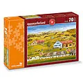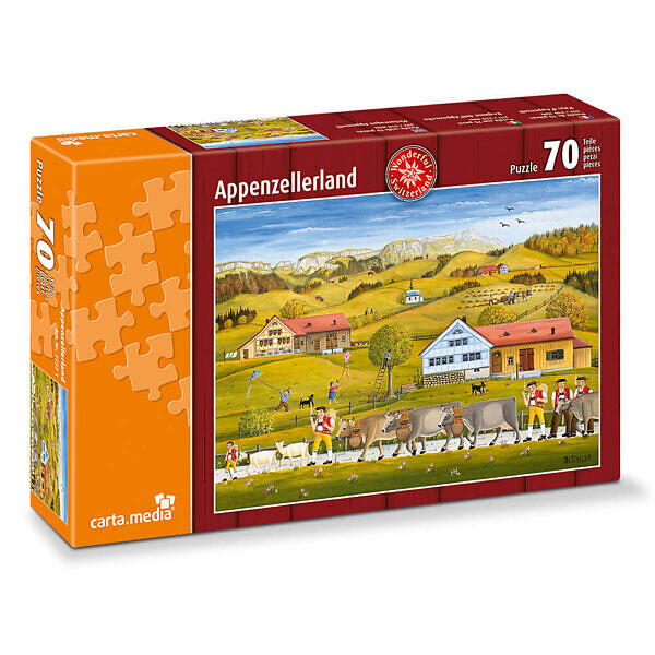 Puzzle mit 70 Teilen im Format 29,7 x 21 cm. Die Malerin Theres Tobler kennt das Leben auf der Alp aus ihrer Kindheit. Landschaften, Menschen und Tiere sind perfekt portratiert; jeder Blick stimmt, jede Haltung ist authentisch. Theres Tobler malt auch die Gesc...