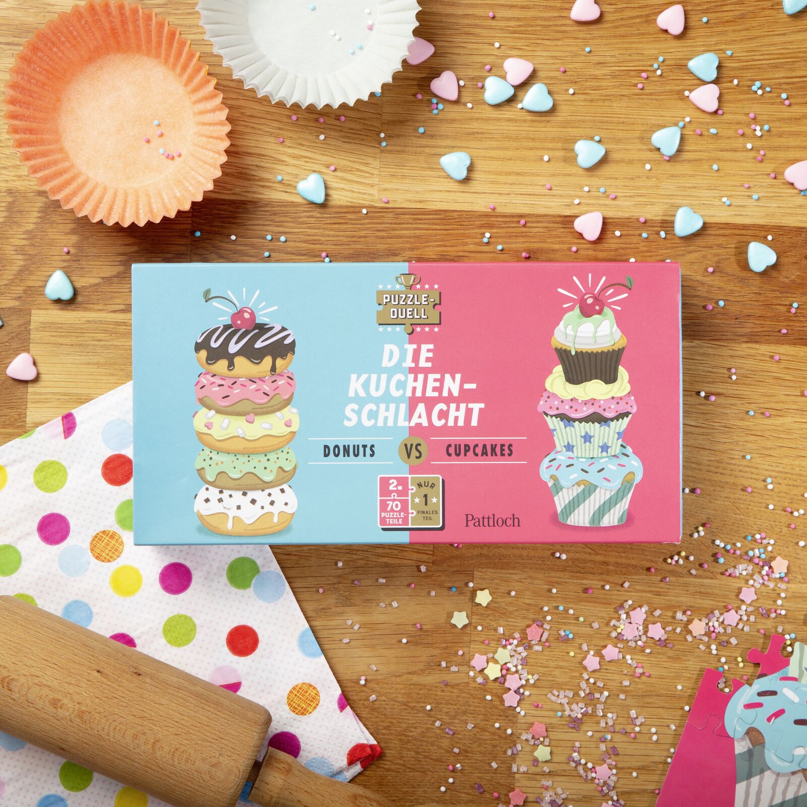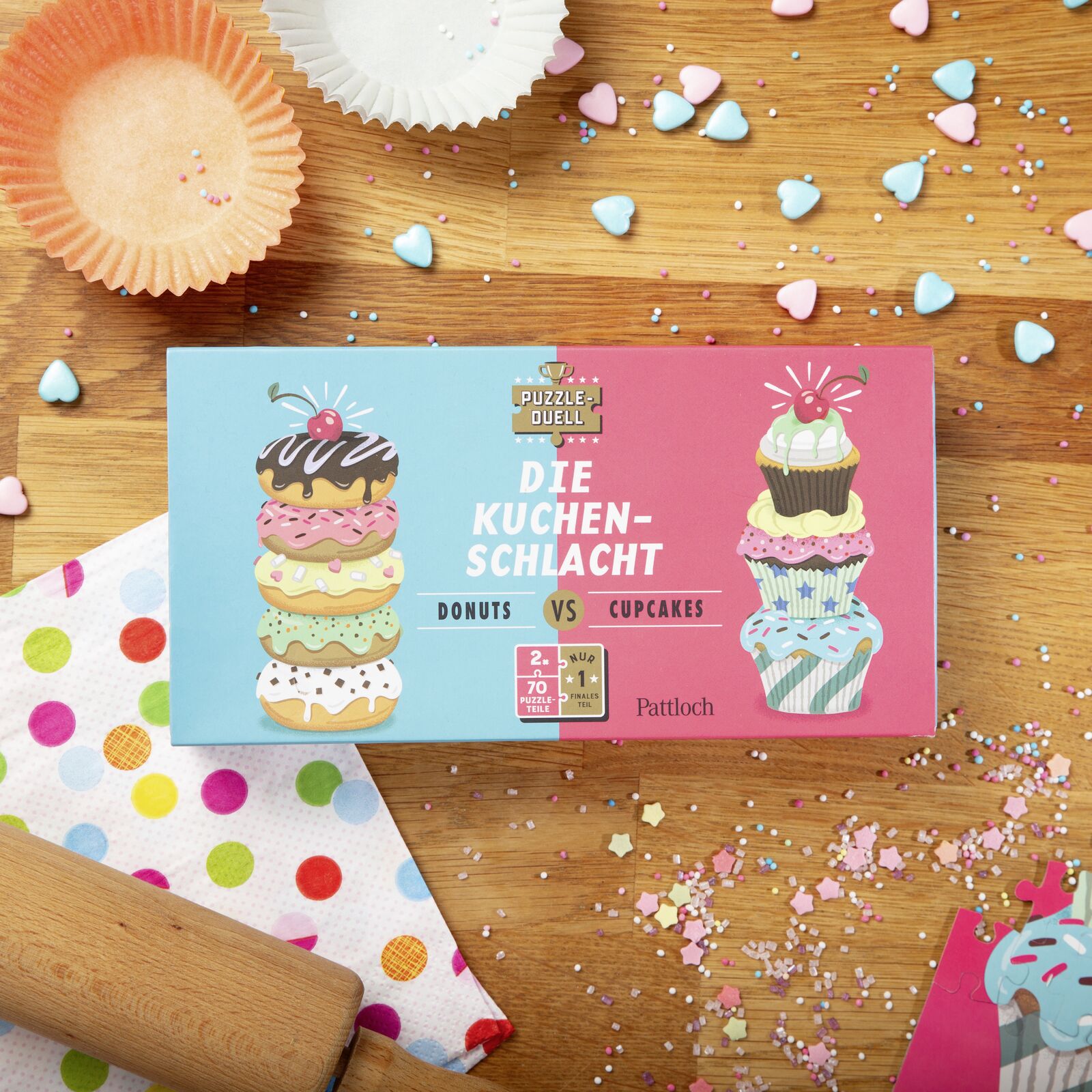 Wer puzzelt schneller? - Lustige Puzzlechallenge für 2 Personen Egal ob du Donuts oder Cupcakes bevorzugst: Dieses Duell wird garantiert kein Zuckerschlecken! Die Schachtel enthält zwei zuckersüße Puzzles à 70 Teile. Wähle eines der beiden Motive aus und gib ...