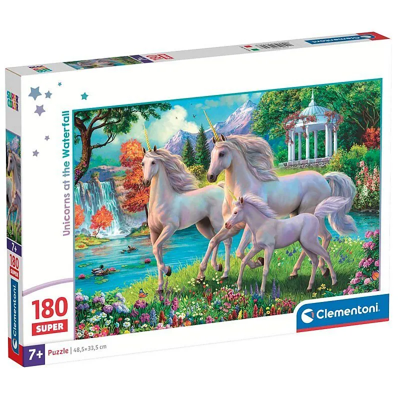 Wunderschönes Puzzle mit Motiv Einhörner mit Wasserfall bestehend aus 180 Teilen.