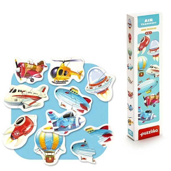 Im Set: verschiedene Flugzeuge, Zeppelin, Hubschrauber, Heißluftballon, Rakete, Ufo. Das Set besteht aus 8 Puzzles à 2 Teilen mit Bildern verschiedener Luftfahrzeuge. Entwickelt Vorstellungskraft, Logik und Feinmotorik. Mit diesem Puzzle-Set tauchen Kinder ein...