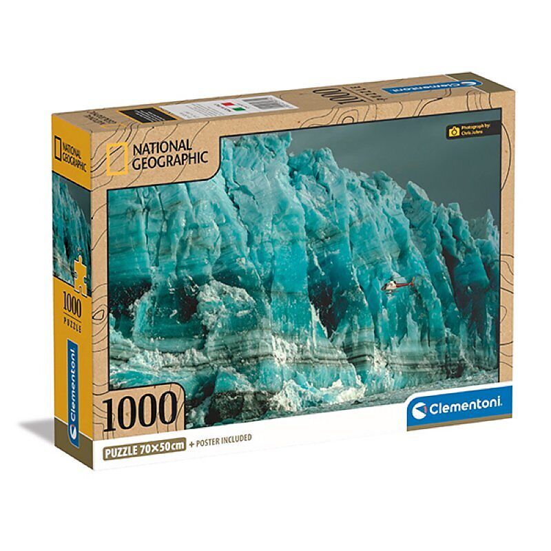 Wunderschönes High Quality Puzzle, National Geographic, mit Motiv Helikopter überfliegt den Hubbard Gletscher bestehend aus 1000 Teilen, inkl. Poster.