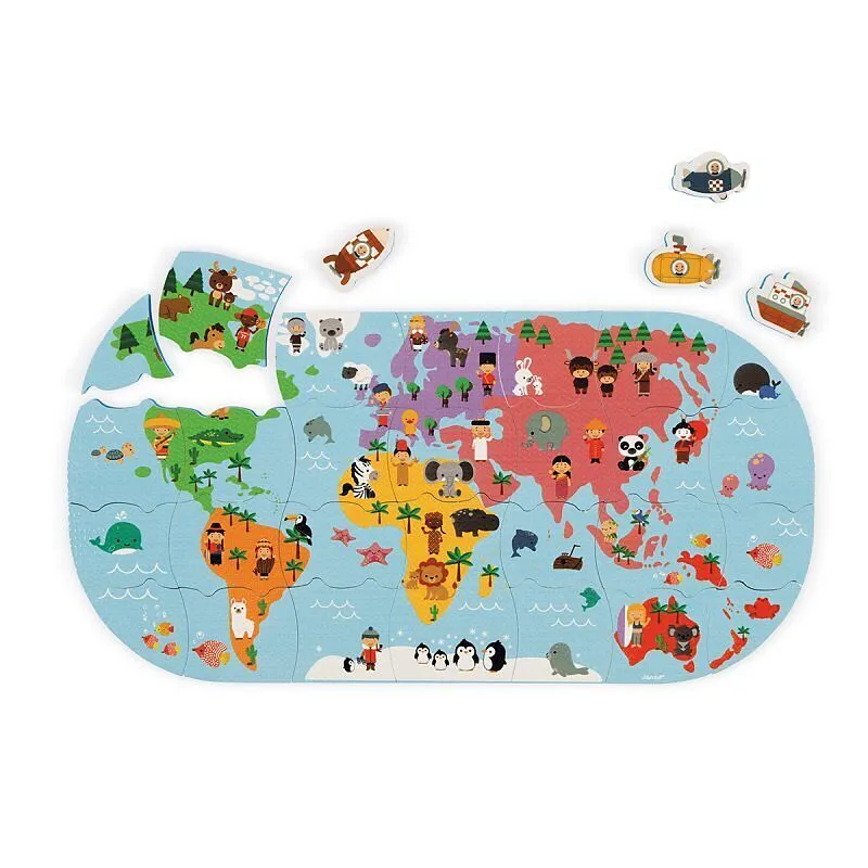Für Kinder ab 3 Jahren. Meine erste Weltkarte zum Spielen und Lernen in der Badewanne. Viel Spass beim Reisen um die Welt mit den vier zusätzlichen Fahrzeugteilen. Tauchen Sie die Teile ins Wasser, sie schwimmen und halten an den Fliessen! 28 Puzzleteile und 4...