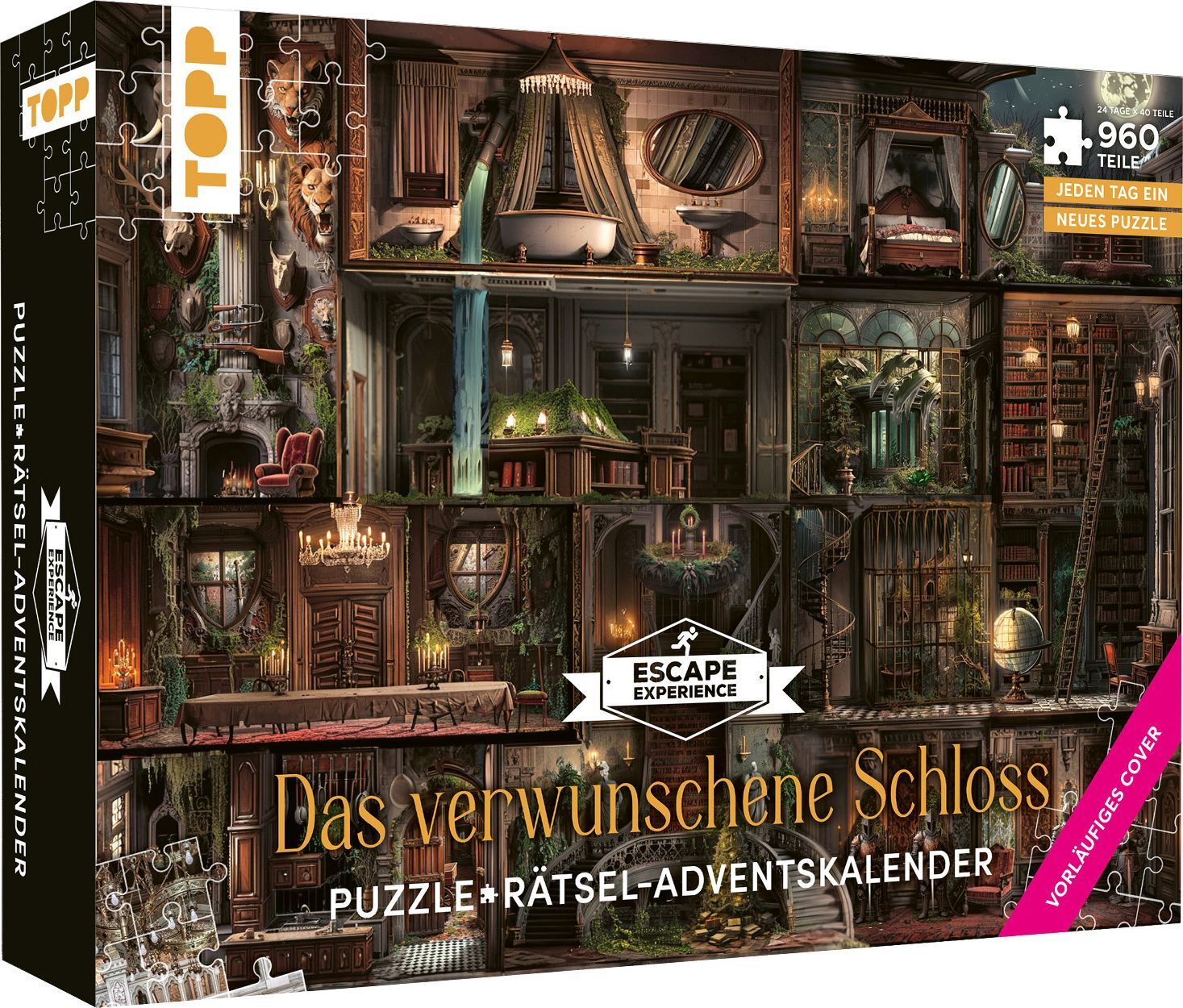 Puzzle-Rätsel-Adventskalender: Das verwunschene Schloss - 24 Puzzles mit insgesamt 960 Teilen 24 TÜRCHEN MIT PUZZLES - jeden Tag neu kombinieren und entschlüsseln FÜR ALLE ESCAPE-FANS - geniale Herausforderung mit insgesamt 960 Teilen DER 4. TEIL DER ERFOLGREI...