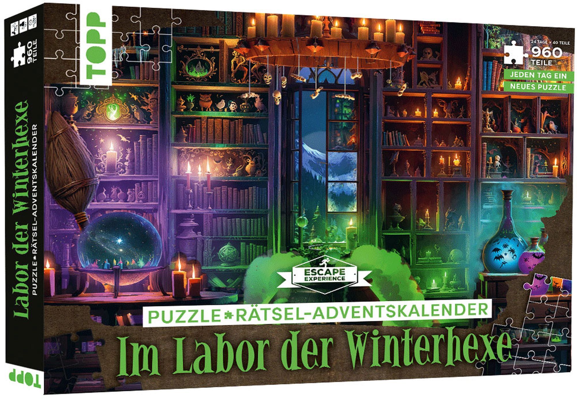Puzzeln, Rätseln, Geheimnisse erkunden! Der Puzzle-Adventskalender für alle Escape-Fans In diesem Adventskalender warten 24 kleine Puzzle auf dich! Begib dich in das Labor der Winterhexe, erkunde ihr verwunschenes Bücherregal und löse die Rätsel. Durch die 24...55 Kunden haben diesen Artikel kürzlich gekauft.