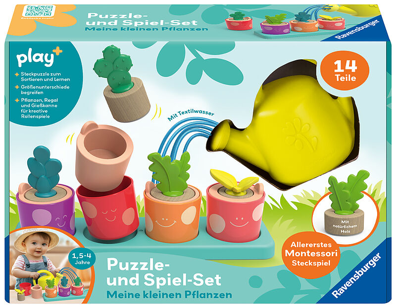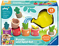 Ravensburger Play+ Puzzle- & Spiel-Set: Meine kleinen Pflanzen - Kinderpuzzle, Pretend Play Set, Montessori Puzzle Gar Pflanzen, Erde, Blumentöpfe und eine lustige Gießkanne mit ''Textilwasser laden kleine Gärtner zum fantasievollen Spielen und Puzzeln ein. Da...