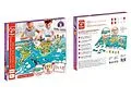 Mit diesem lustigen 2-in-1-Spiel startest du eine Weltreise mit deinen Freunden. Lege zuerst das 100-teilige Puzzle mit allen Kontinenten der Welt. Mit den beiliegenden Holzfiguren kannst du die einzelnen Länder bereisen. Enthält ein doppelseitiges Poster.