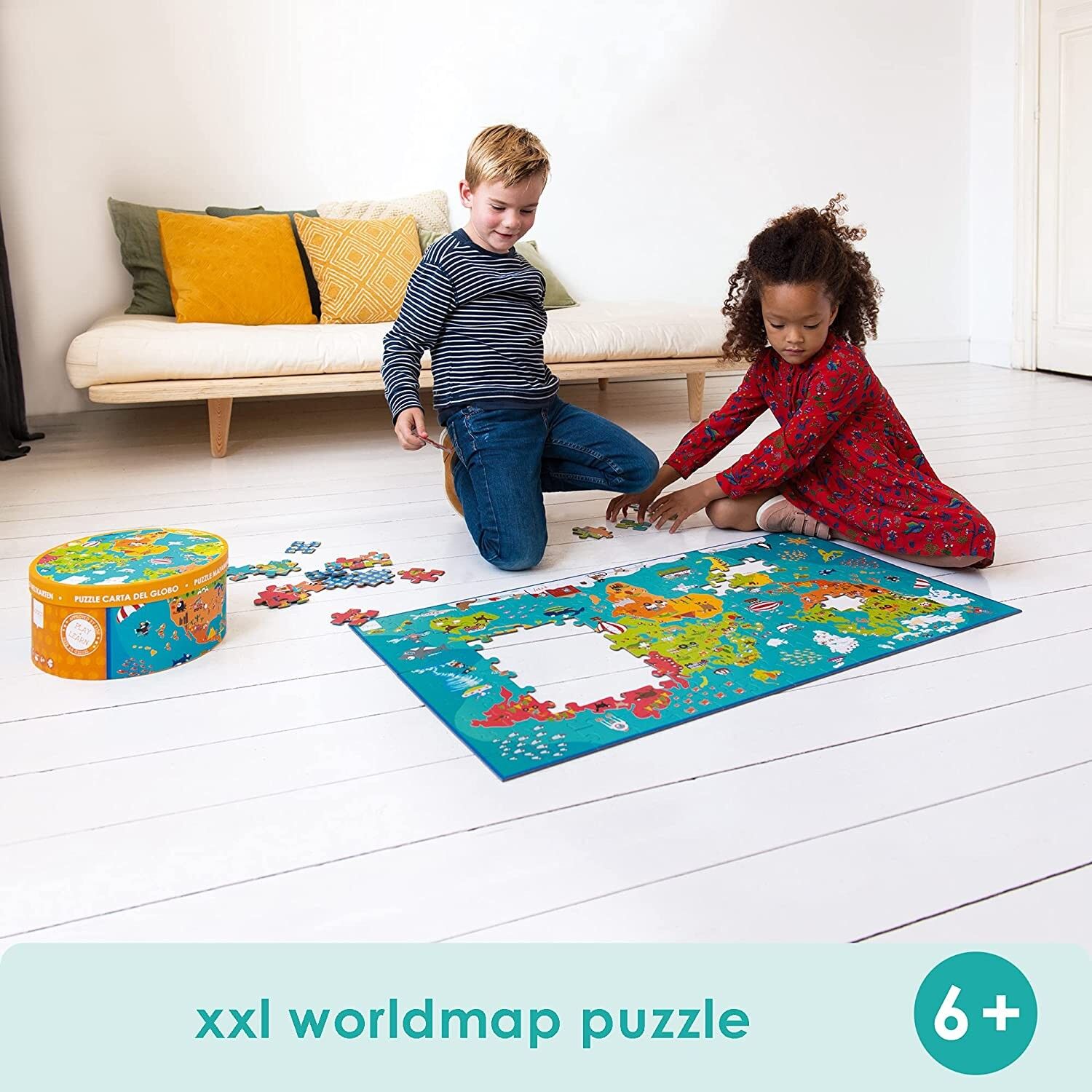 Detailreiches Puzzle mit großartigem Weltkarten-Design. Lege die Puzzleteile eins nach dem anderen an die richtige Stelle und beobachte, wie ein wunderschönes Bild zum Leben erwacht! Das Puzzle besteht aus 150 Teilen und ist für Puzzlegenies ab sechs Jahren ge...