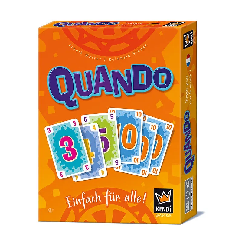 QUANDO Gleiche Zahlen oder eine Straße ausspielen - so wirst du deine Karten los! Und das Geniale daran: Wenn dir eine Zahl nicht gefällt, dann drehst du die Karte einfach um, denn bei Quando hat alles zwei Seiten. So einfach, so spannend. Spielspaß garantiert...
