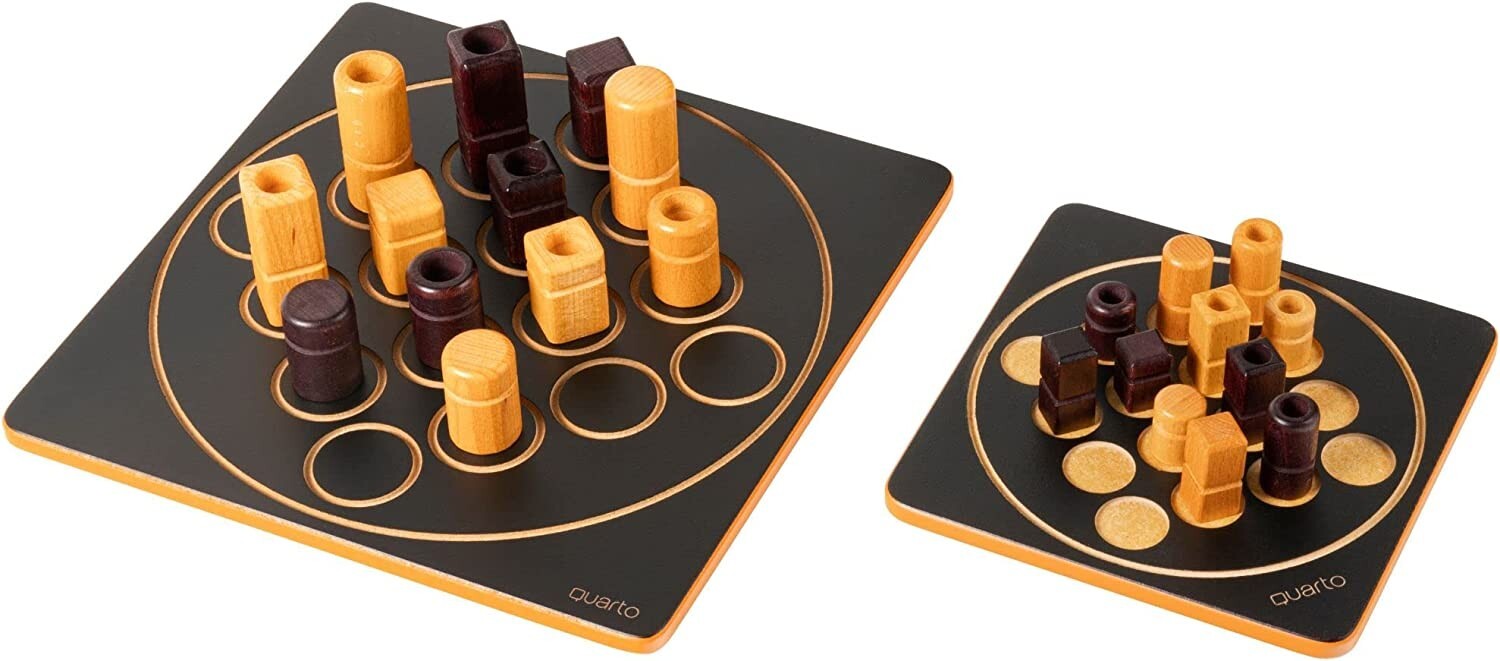 Die kleine Variante zu Quarto Classic - Quarto Mini Wähle weise, welche Teile du deinen Gegner ausspielen lässt. Quarto Mini bietet den abstrakten Klassiker im kompakten Format. Bei Quarto verfügt jeder von euch über 16 Spielfiguren mit jeweils vier Eigenschaf...