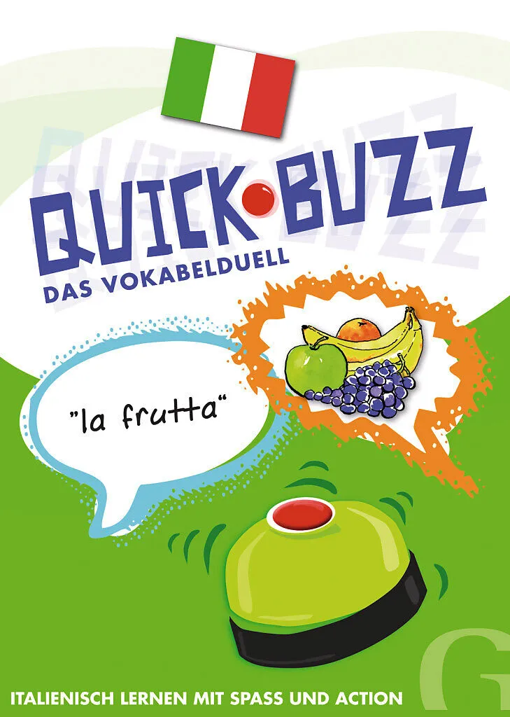 Niveau A1 bis B1 Schnell denken, schnell reagieren, geschickt kombinieren darum geht es bei QUICK BUZZ Das Vokabelduell - Italienisch . Wer die Vokabel kennt und als erster auf die Tischglocke haut, gewinnt die Karte. Jeder Spieler versucht möglichst viele Ka...