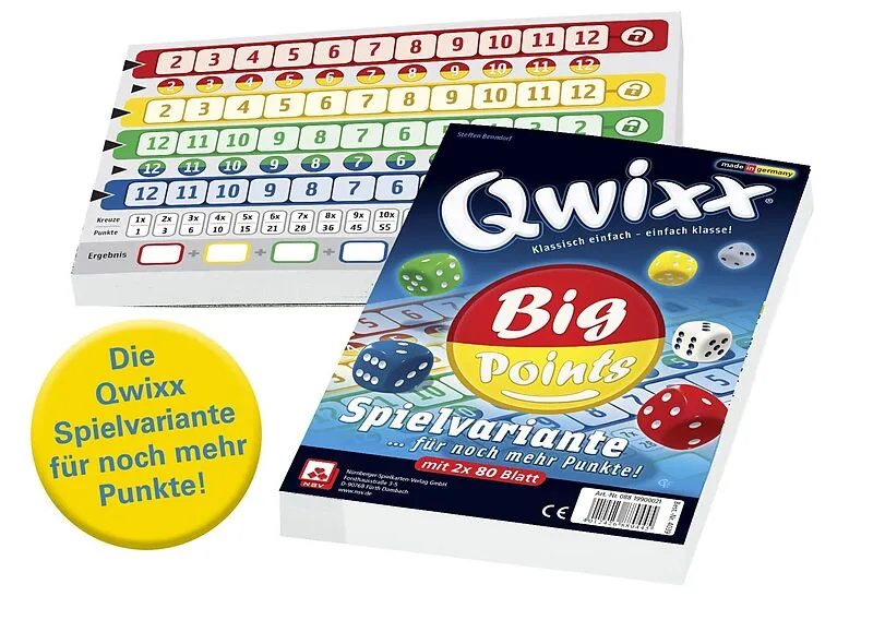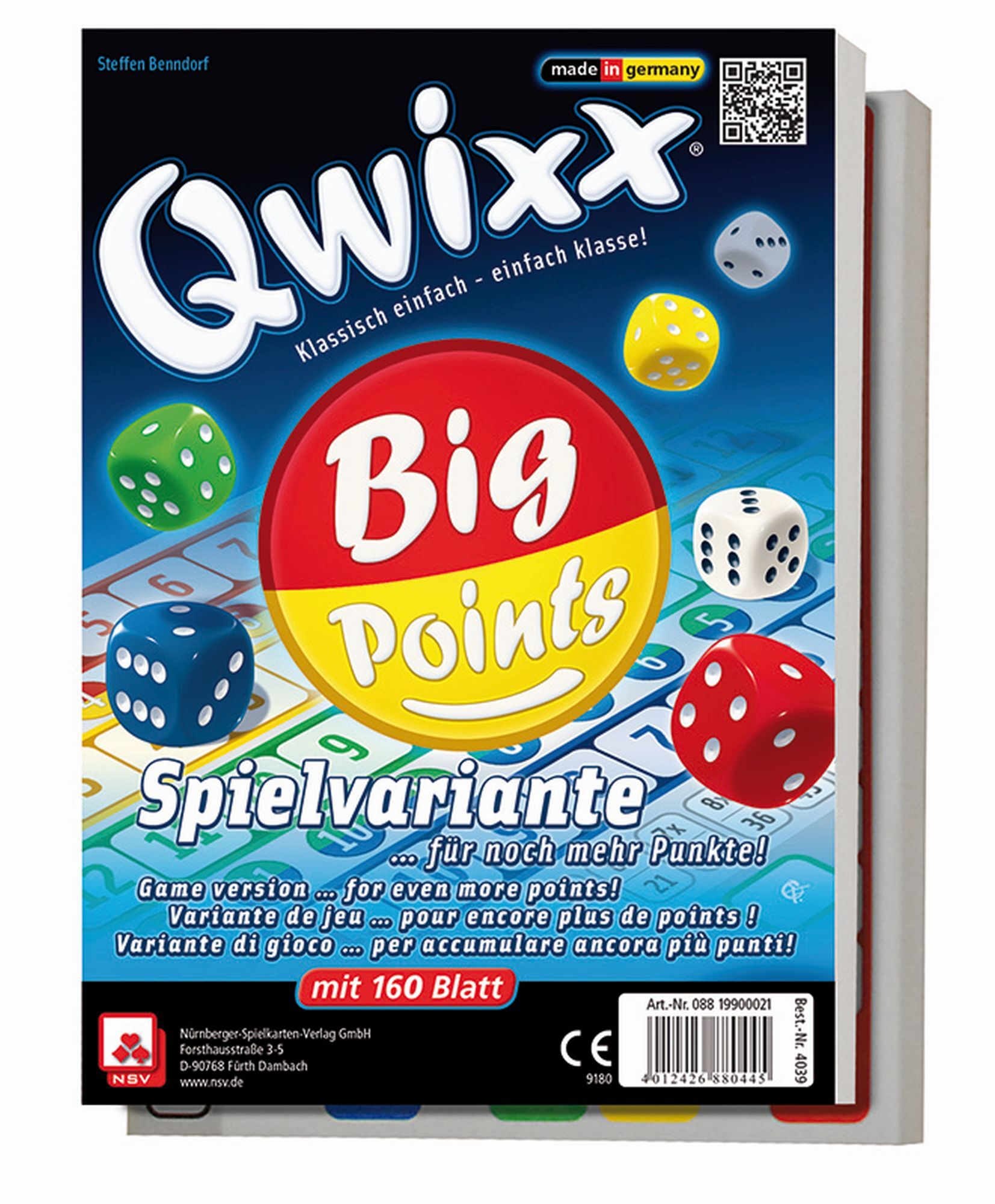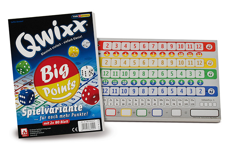 Qwixx Big Points - 2 Blöcke mit je 80 Blatt 160 Blatt für noch mehr Punkte! Wer Qwixx liebt, der spielt es immer wieder - andere Taktik ausprobieren, noch mehr Kreuze machen, noch mehr Punkte erzielen. Und genau an dieser Stelle setzt die Zusatzvariante Qwixx ...