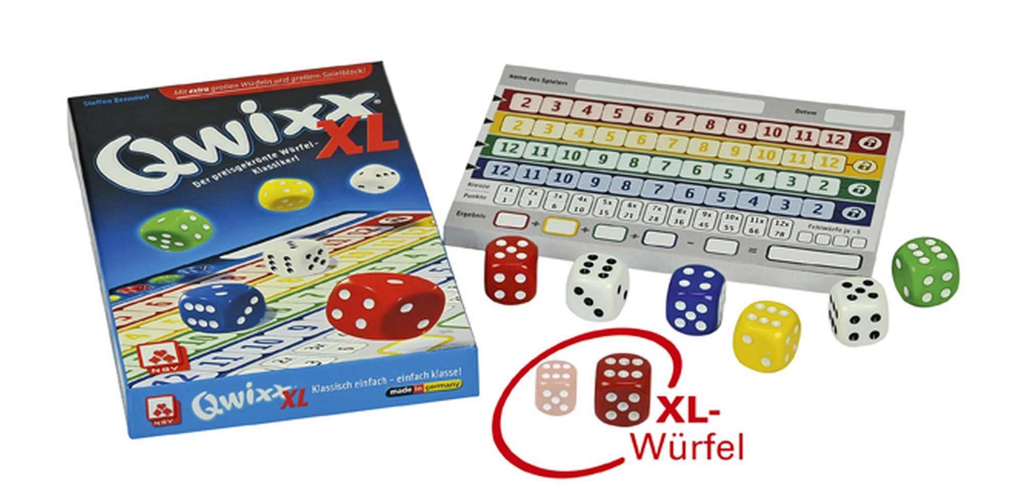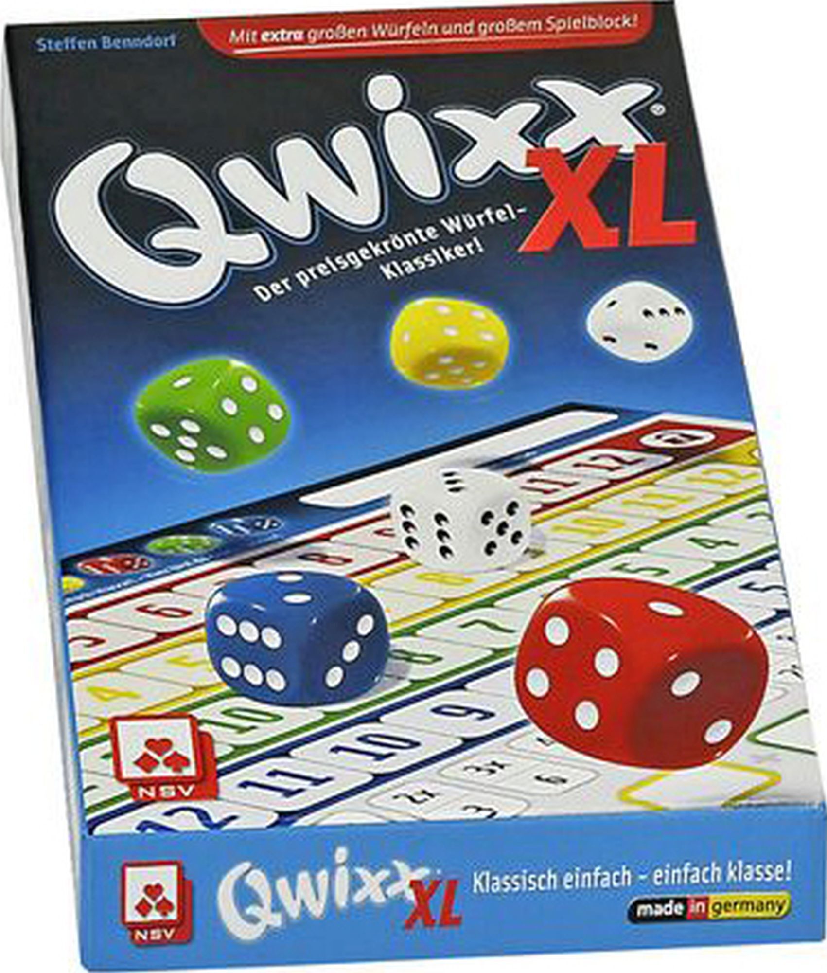 Bei Qwixx XL ist alles etwas größer. Größere Würfel (18mm) und ein größerer Spielblock (A6) machen alles einfacher. Ansonsten bringt auch Qwixx XL alles mit, was ein echter Würfel-Klassiker braucht: einfache Regeln, niedriger Preis, großer Spielspaß! Und das B...