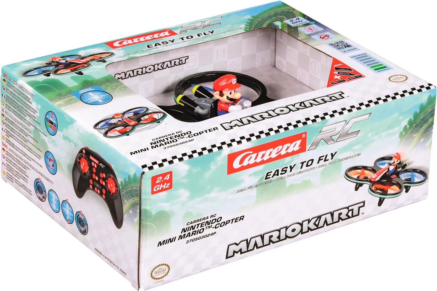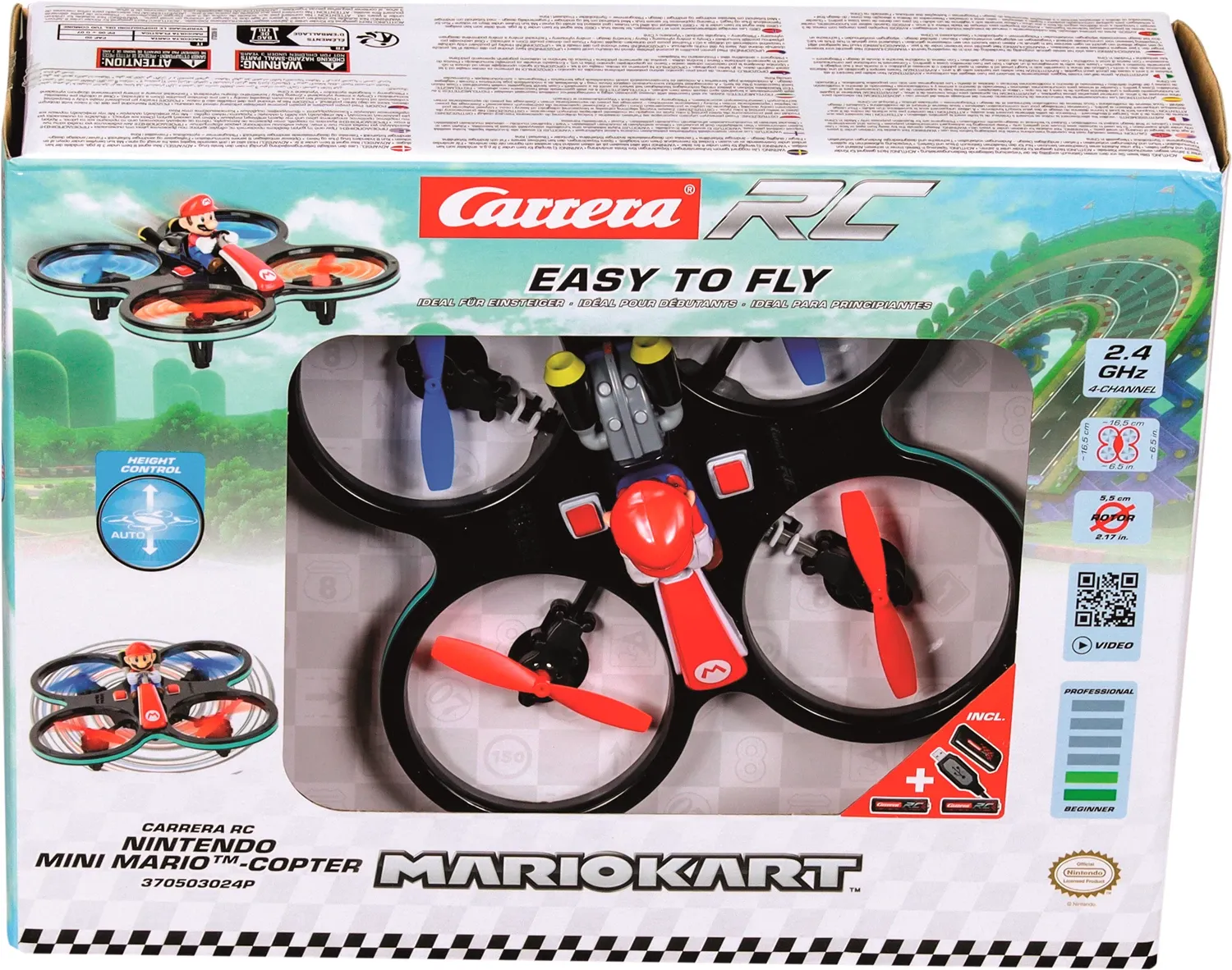 Höhenflug mit -- It´s-a-me, Mario! -- Der gerade einmal 16.5 x 16.5 cm grosse Quadrocopter mit einem Rotordurchmesser von 5.5 cm ist 'Ready to Fly' und mit 2,4 GHz Digital Proportional Technologie ausgestattet. Dank Spezialfunktionen wie Beginner-Advanced Modu...