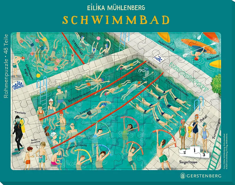 Wimmelspaß im Schwimmbad! Bei diesem großen Rahmenpuzzle mit 48 Teilen können kleine Puzzlefans ihre Feinmotorik und ihren guten Blick unter Beweis stellen. Achtung! Das Puzzle enthält verschluckbare Kleinteile und ist nicht geeignet für Kinder unter 3 Jahren....