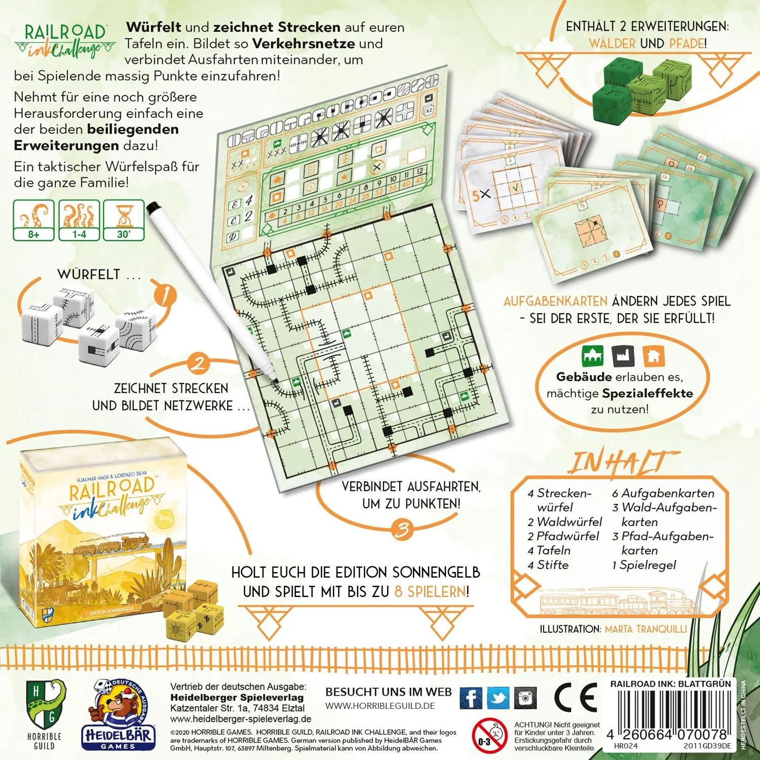 Die neuen Challenge-Titel folgen dem gleichen Prinzip wie die beiden Vorgänger-Spiele Railroad Ink: Edition Tiefblau und Railroad Ink: Edition Knallrot, setzen aber einen Fokus auf die Interaktion zwischen den Spielern. Es gibt Zielkarten, deren Kombination im...