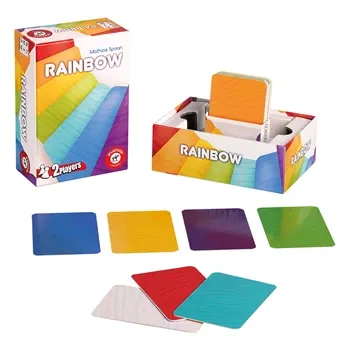 In RAINBOW sind alle Karten beidseitig mit einer Farbfläche bedruckt und gehören nur zur Hälfte dir: Die Vorderseiten für dich, die Rückseiten für dein Gegenüber. Merke dir die Kartenrückseiten deines Gegners und kombiniere sie gekonnt mit deinen Vorderseiten....