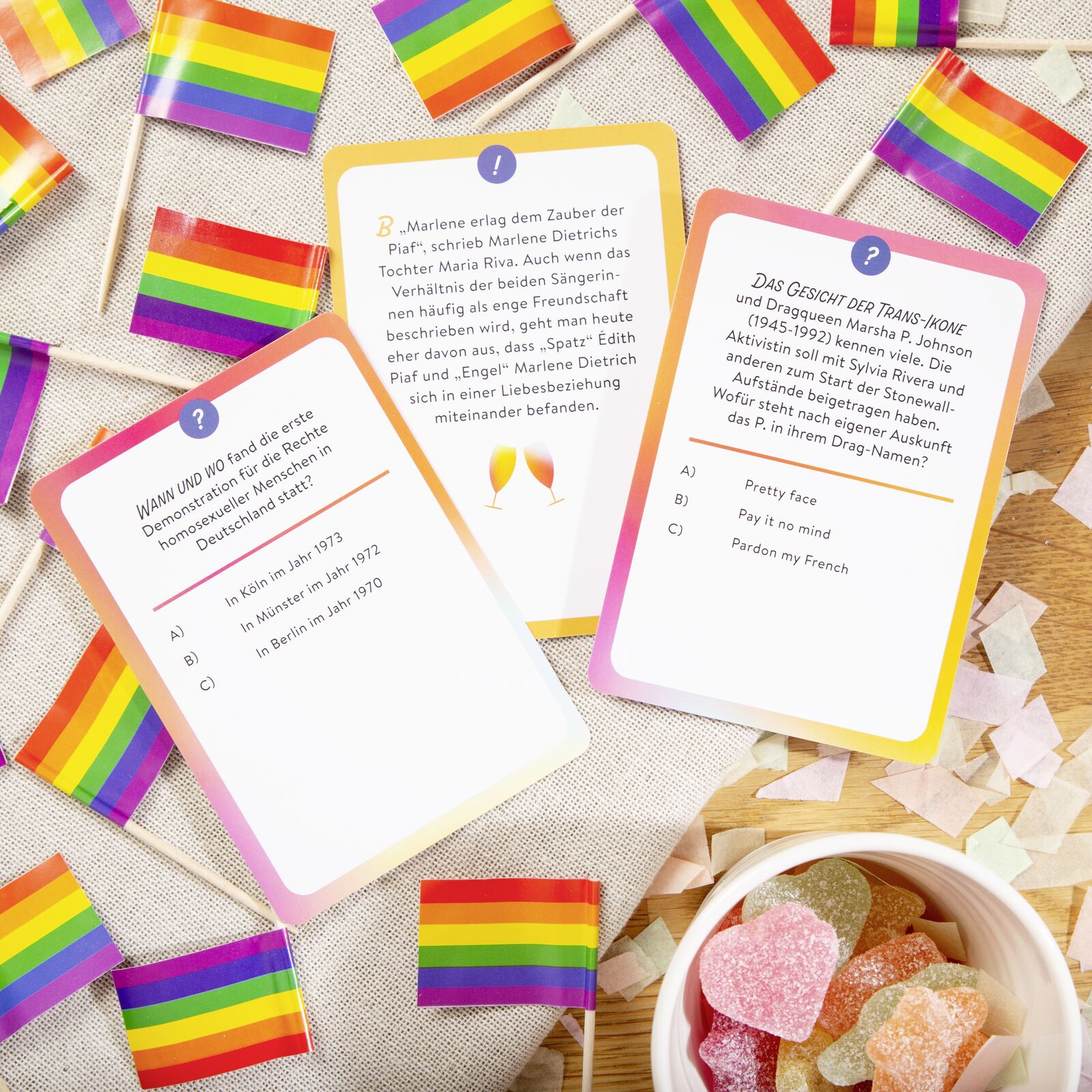Bunt wie die LGBTIQ+-Community - Das queere Trivia Quiz Warum wurde kurz nach Einführung der Regenbogenflagge ein Streifen wieder entfernt? Warum wurde Oscar Wilde angeklagt? Und was sollen Isaac Newton, Spongebob Schwammkopf und Caitlyn Jenner gemeinsam habe...