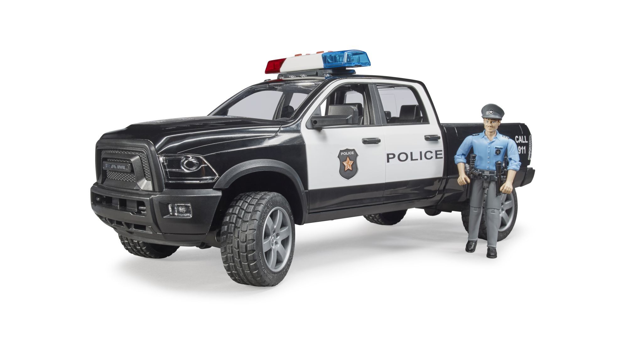 Bruder 02505 RAM 2500 Polizei Pickup mit Polizist Die BRUDER Polizei erhält Verstärkung. Um auch abseits der Stadt, im schwer zugänglichem Gelände aktiv sein zu können, kommt zu den BRUDER Einsatzkräften ein 4x4 Polizei Pickup Truck hinzu. Das Einsatzfahrzeug ...