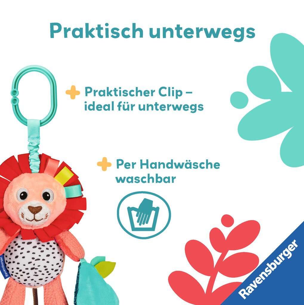 Mit vielen spannenden Materialien und Spieleffekten fordert dieser Kuschellöwe kleine Babys zum Entdecken auf. Greifen, Schütteln und Bewegen Babys das Plüschtier, rasselt der Löwenbauch # eine ganz spielerische Förderung der Feinmotorik! Hochwertige, kontrast...
