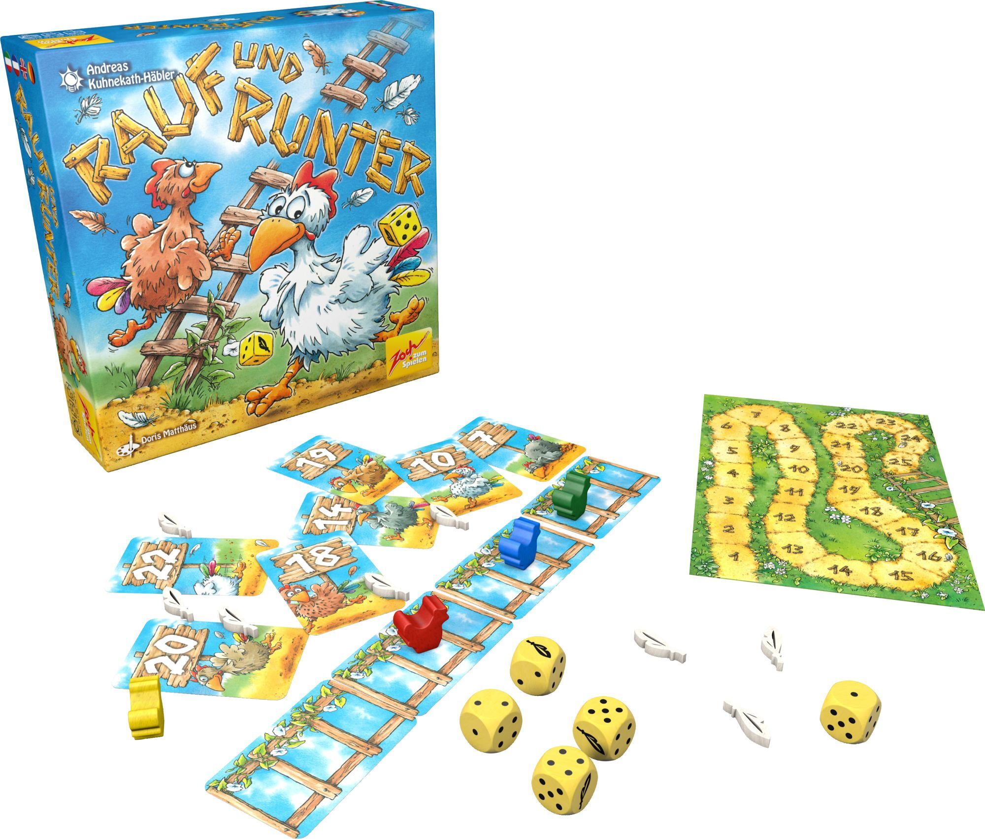 Rauf und runter Im Hühnerhof herrscht Hochbetrieb, denn Glucki und seine gefiederten Freunde sind auf einer spannenden Mission: die Eroberung der Hühnerleiter! Wer wird es schaffen, die Spitze zu erreichen und zum ''Premium-Hühnchen'' aufzusteigen? Inhalt Inha...